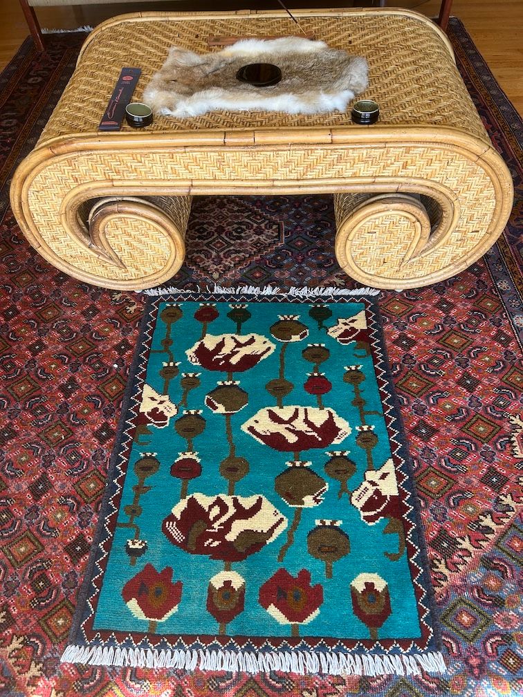What smells like questionable quality diesel fuel mixed with Spectacular?!?! This Rug from Afghanistan! Looks even better in person. Your house guests might laugh neverously when they see this rug, suspect you have more then a gun addiction. FTW!
