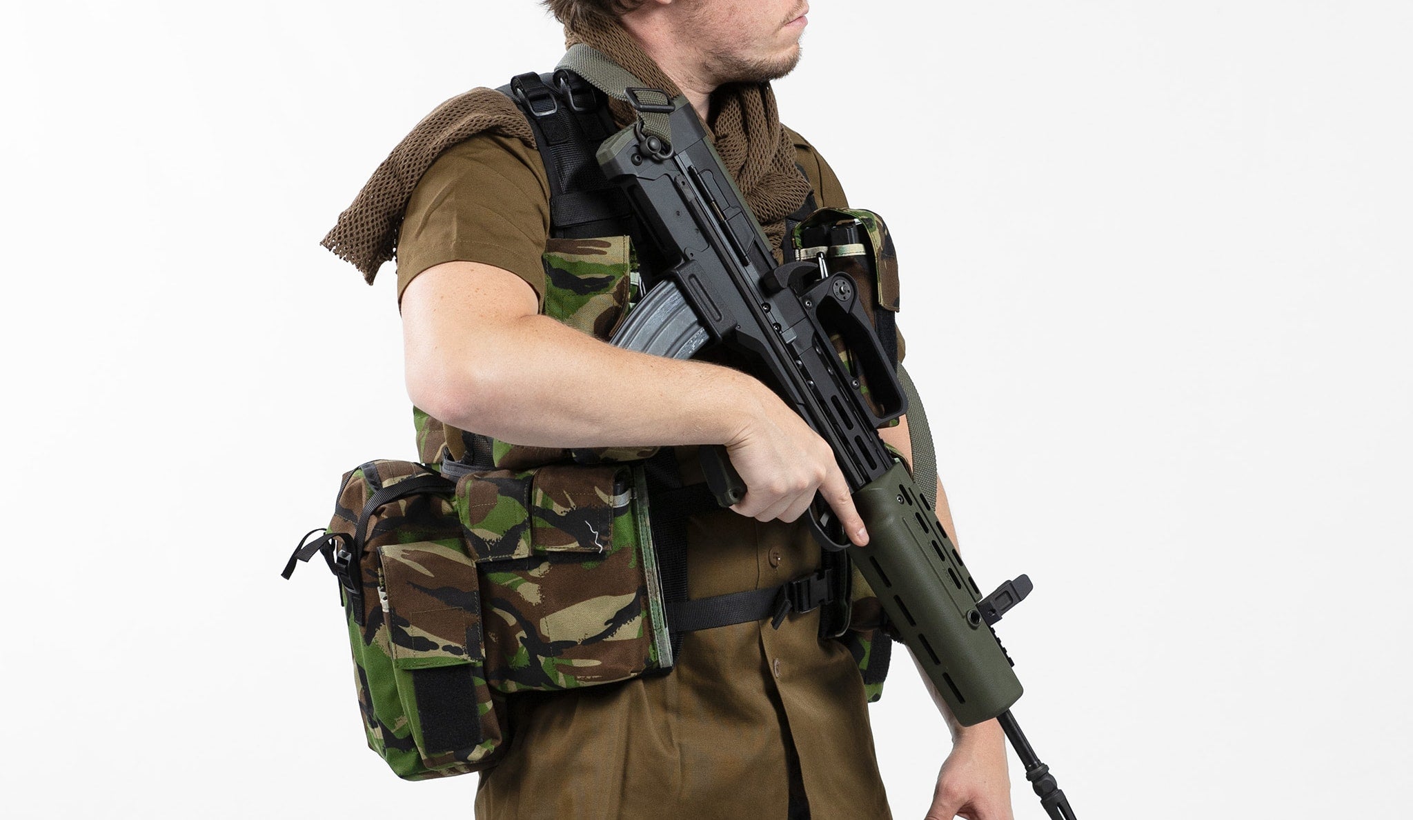 Pay attention to the height of the vest and position of the upper magazine pouches, as this will place the padding and magazine pouches in a way that will cause minimal intrusions to the wearer when shouldering a rifle.