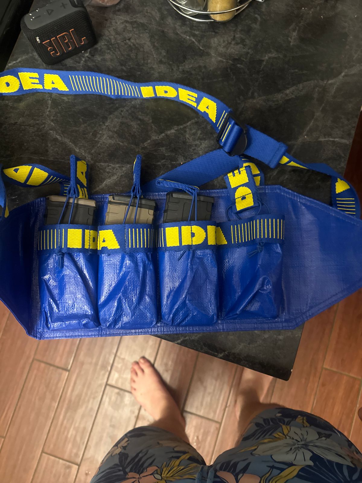 What we did different was start from scratch but keep the soul of the IDEA rig intact — It's the same poly composite tarp fabric as a certain swedish furniture store's iconic totes (but far thicker and sturdier), and the rig carries the classic motifs right over from the game.