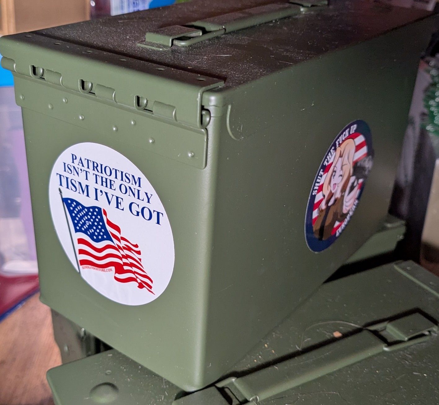 Have it on my .45 ammo can., with my Patrio'Tism sticker. It's held up well, good colours.