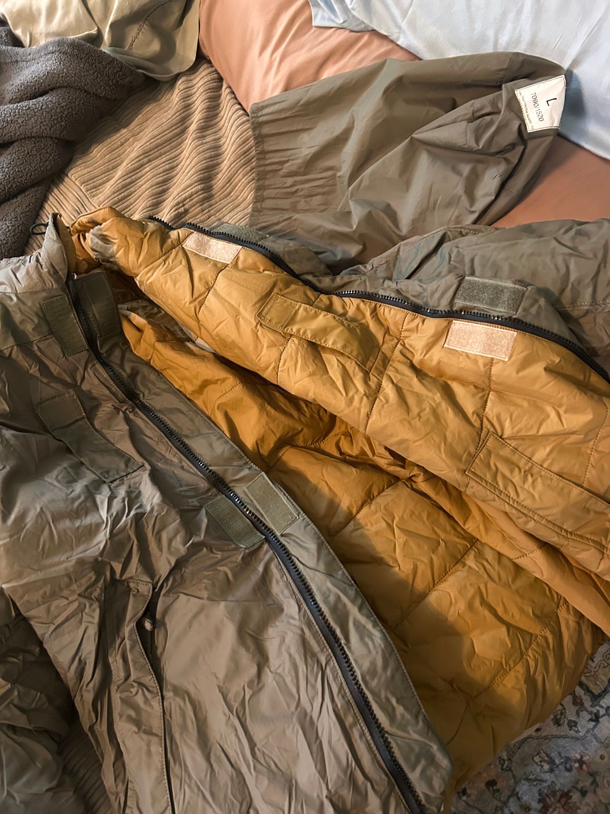 Built for temperatures down to 23 degrees fahrenheit (-5°C for non-moon-landed nations), this jacket features a quilted thermal liner (100% polyester) that traps heat without bulk or weight, while the 100% polyamide outer layer shrugs off wind and light moisture. The reversible flip-around zipper pull lets you switch between Olive OD and Coyote in instant, allowing you to effortlessly betray your mil-sim team. Reinforced panels on the shoulders and sleeves (green side) add durability for rugged use, and the windstopper storm flap keeps the chill out. Zipped pockets with protective flaps offer secure storage, while elasticated cuffs, an adjustable collar, and drawstring waist ensure a snug cozy fit to lock in all your warmth and smells.