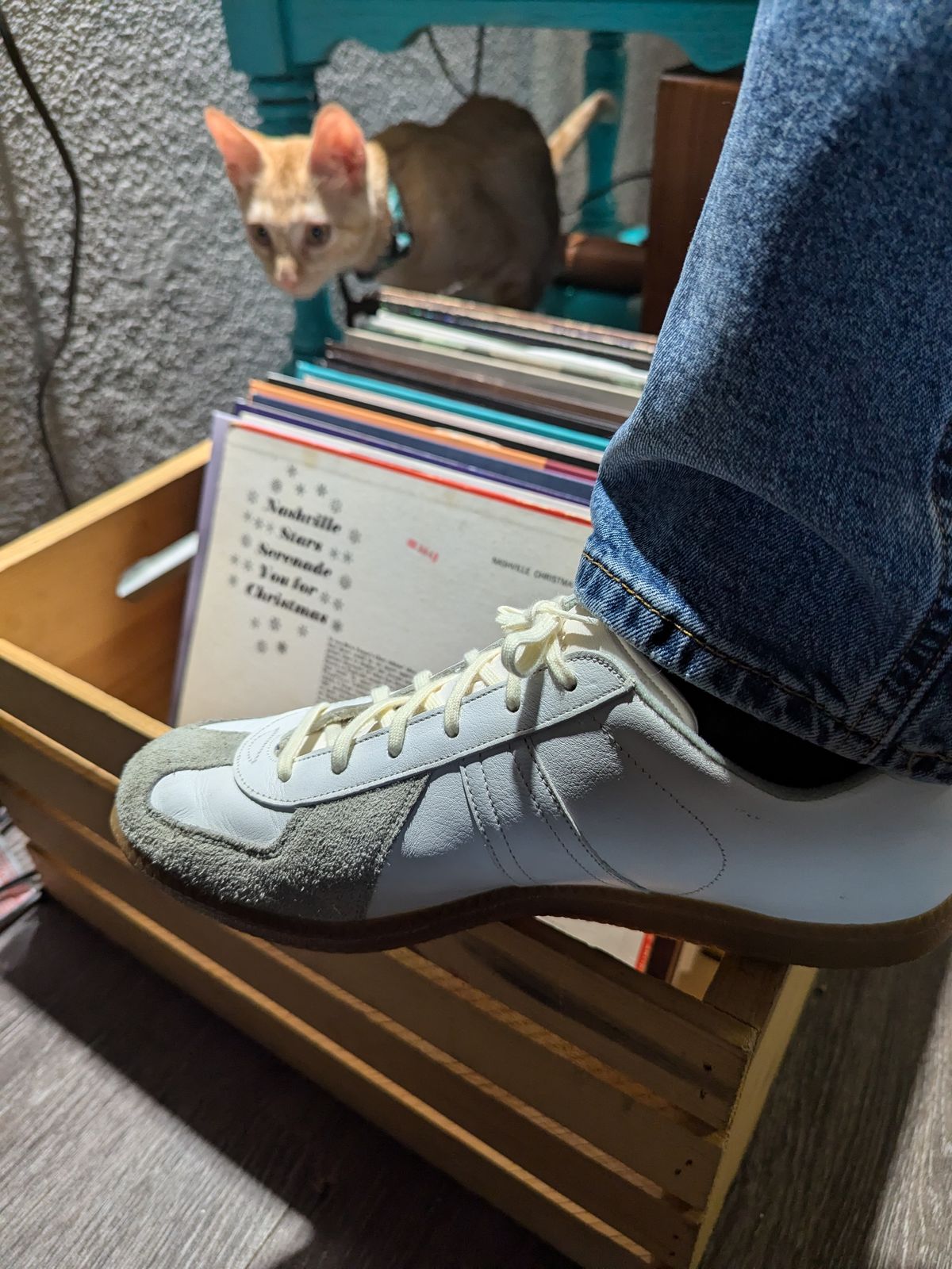 That one weird item is Sportschuhe Bw Hallenschuhe weiß, AKA the German Army Trainers or GATs for short. These are the German Army Trainers produced for the Bundeswehr in the 80s and 90s. No Reproductions here. These are the real deal.