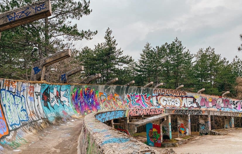 As the battle intensified, Bosnian-Serbs famously dug in on the Bobsled/Luge track and used it as an artillery stronghold. To this day, you can still see firing ports drilled into the concrete.