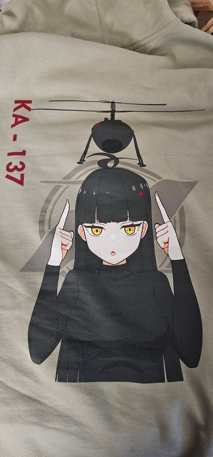Our bundle features an extra-fine, double-sided screen print of Kamov-chan on the Hanes Beefy Tee or the Independent trading co. hoodie. Using high quality inks and our favorite US based print shop, we're able to achieve an incredible level of detail, color, and quality. And unlike cheaper 'direct-to-garment' printing methods, our screen print will stand the test of time.