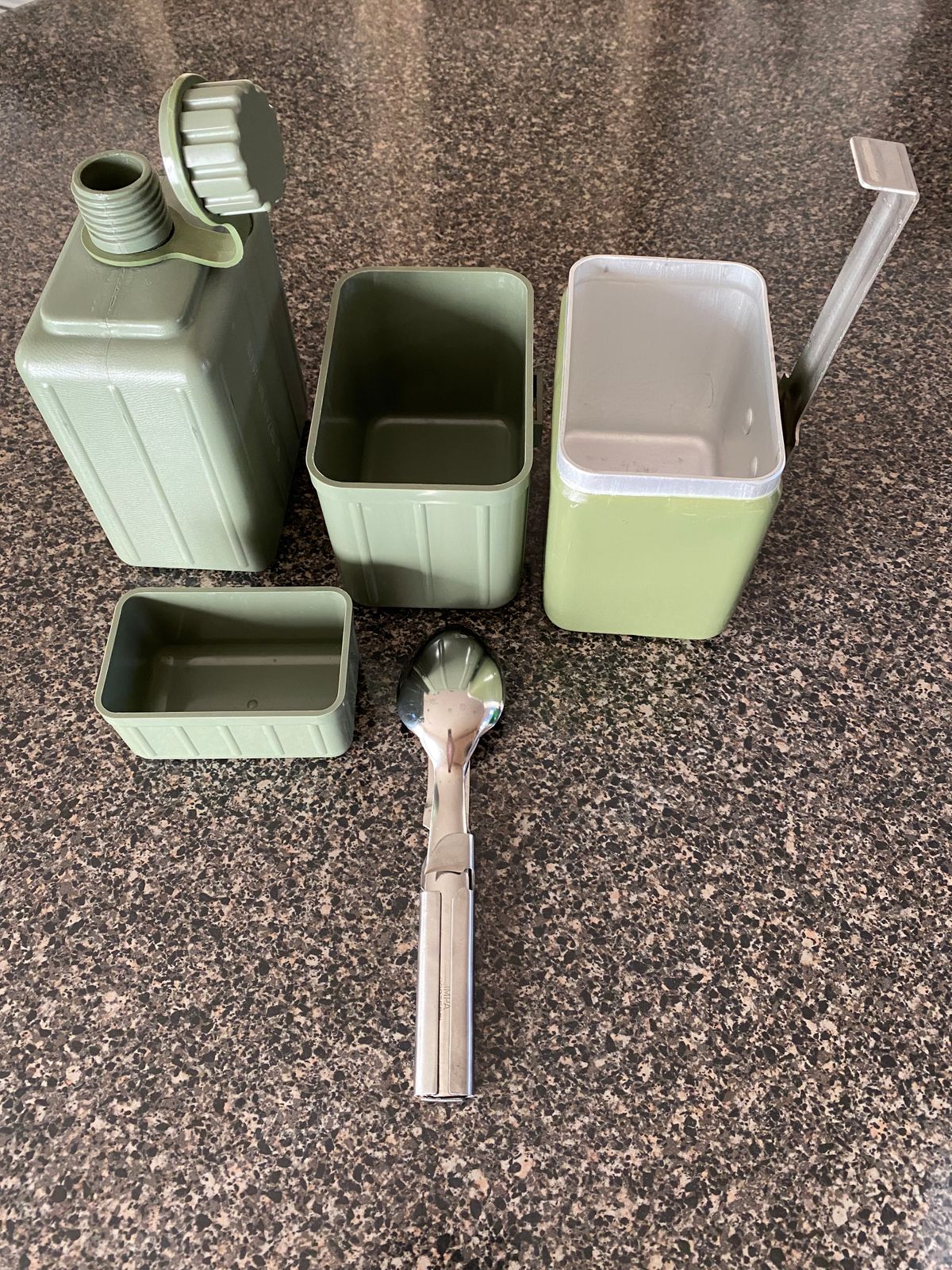 Looks almost unissued condition. Has everything a mess kit should. The travel silverware lock together, which is pretty cool