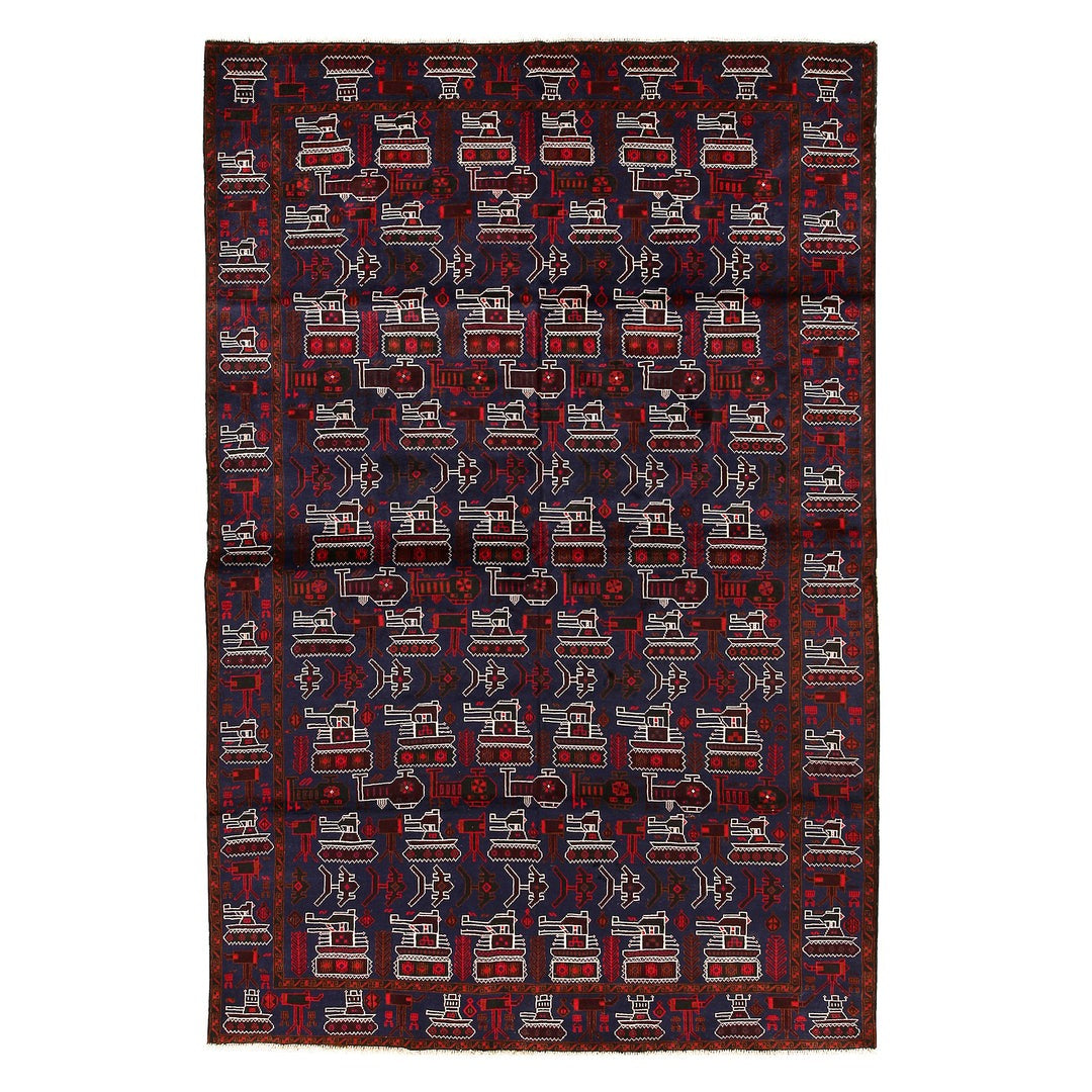 Another very busy design featuring what we're lovingly referring to as the "America Gun" front and center. These are usually the most colorful rugs, but not as common as the other variants shown here.