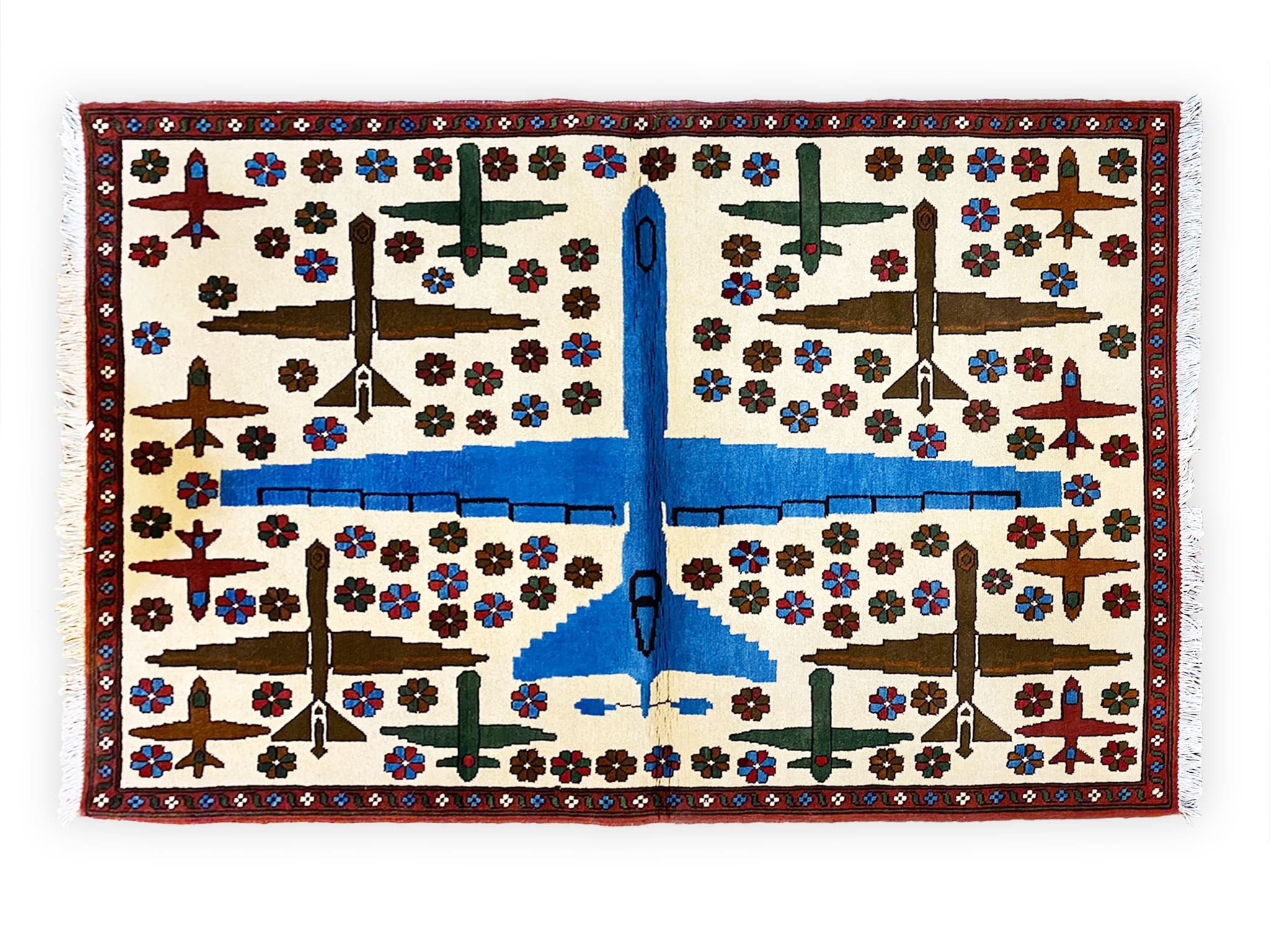 A depiction of the MQ-1 Predator dones. Newer rugs depict newer drones such as the AQ-9 Reaper, But the pictured rug's pattern is far more common. Other surveilance craft can sometimes be seen on the rugs as well.