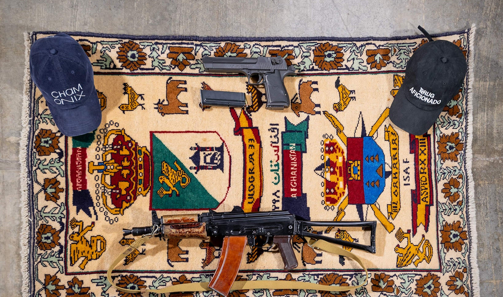 Don't be misled - they're not claiming that AKs are made in Afghanistan, they're talking about the rugs, hence the date of weaving '2023' also indicated... These are a simple design fit for any AK nerd's cave.
