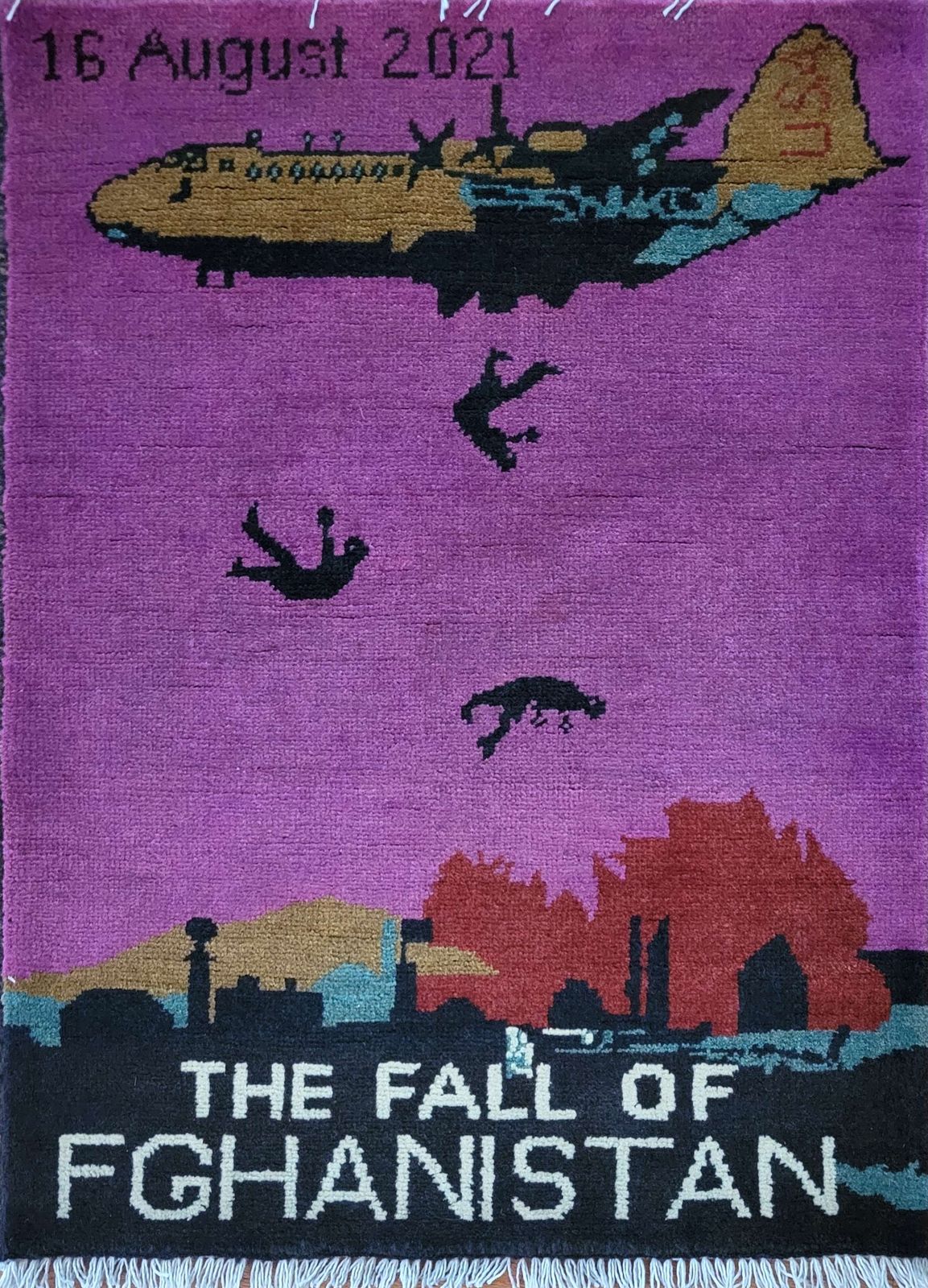 Handmade since the Soviet-Afghan war, war rugs are a bizarre cultural mash-up between Afghan pictorial weaving and images of conflict. Tanks, planes, guns, and explosions are painstakingly hand knotted into wool rugs in small Afghan villages and in refugee camps along the Pakistani border. Each rug is the unique result of over a month of work by the weaver and a valuable source of income for an Afghan family it supports.