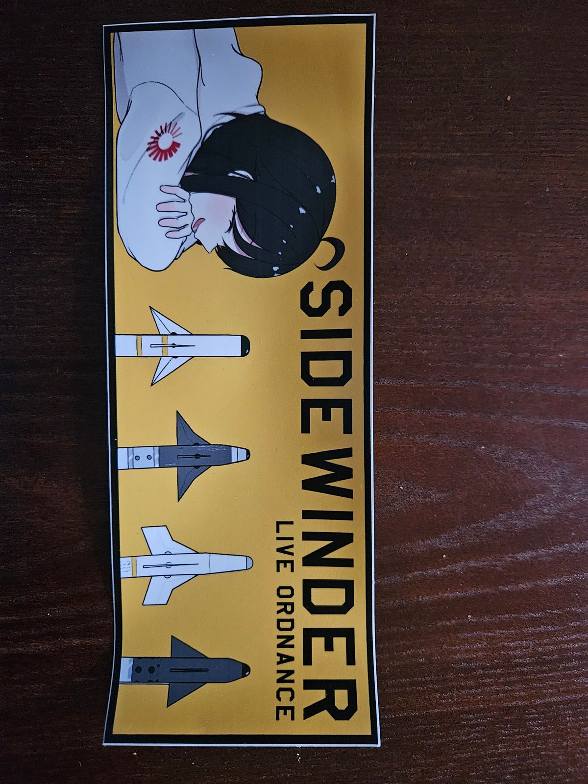 We've collaborated with everyone's favorite plane-waifu artist Atamonica to bring you a devilishly cute air to air missile. Our bundle features an extra-fine, double-sided screen print of Aim-9 Sidewinder-Chan. Using high quality inks and our favorite US based print shop, we're able to achieve an incredible level of detail, color, and quality. And unlike cheaper 'direct-to-garment' printing methods, our screen print will stand the test of time.