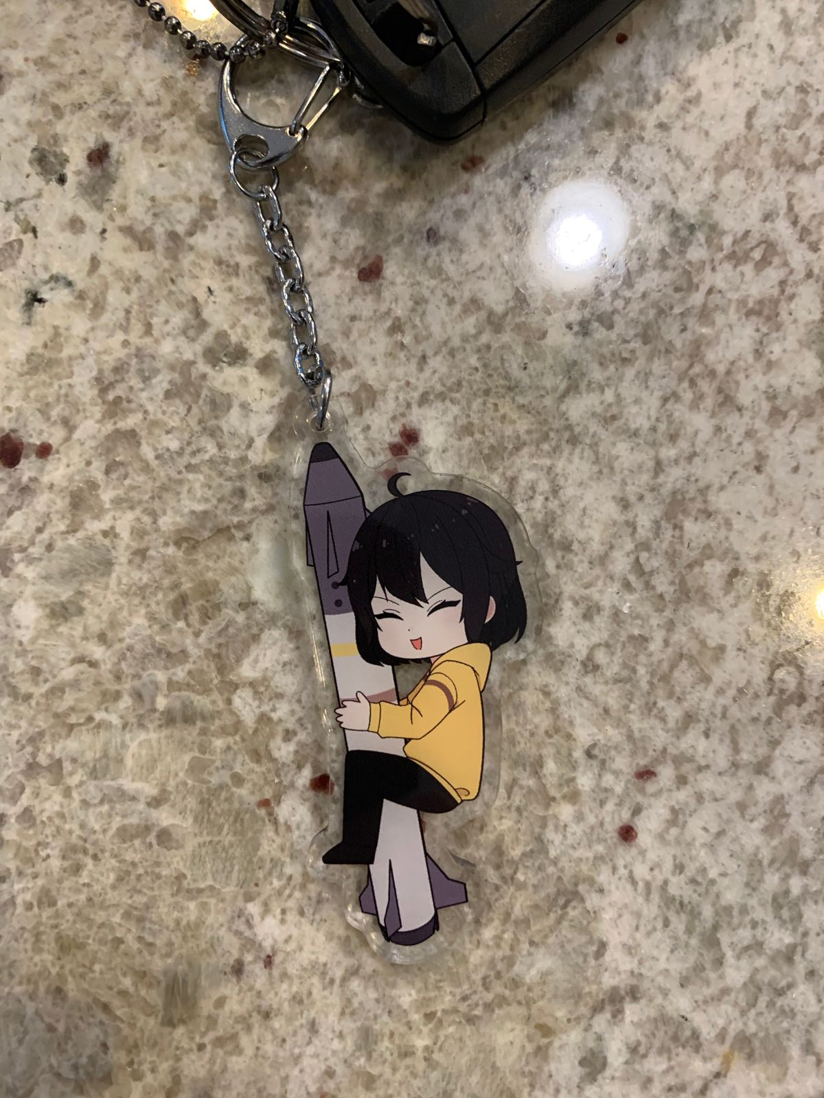 Featuring an exclusive design from Atamonica, chibi-AIM-9 chan has been shrunk down to fun size. She'll lock on to your keyring, phone, or as many video games have hypnotized you to do, add it on to your main 'weap of choice in the "accessories" tab of the customization screen.