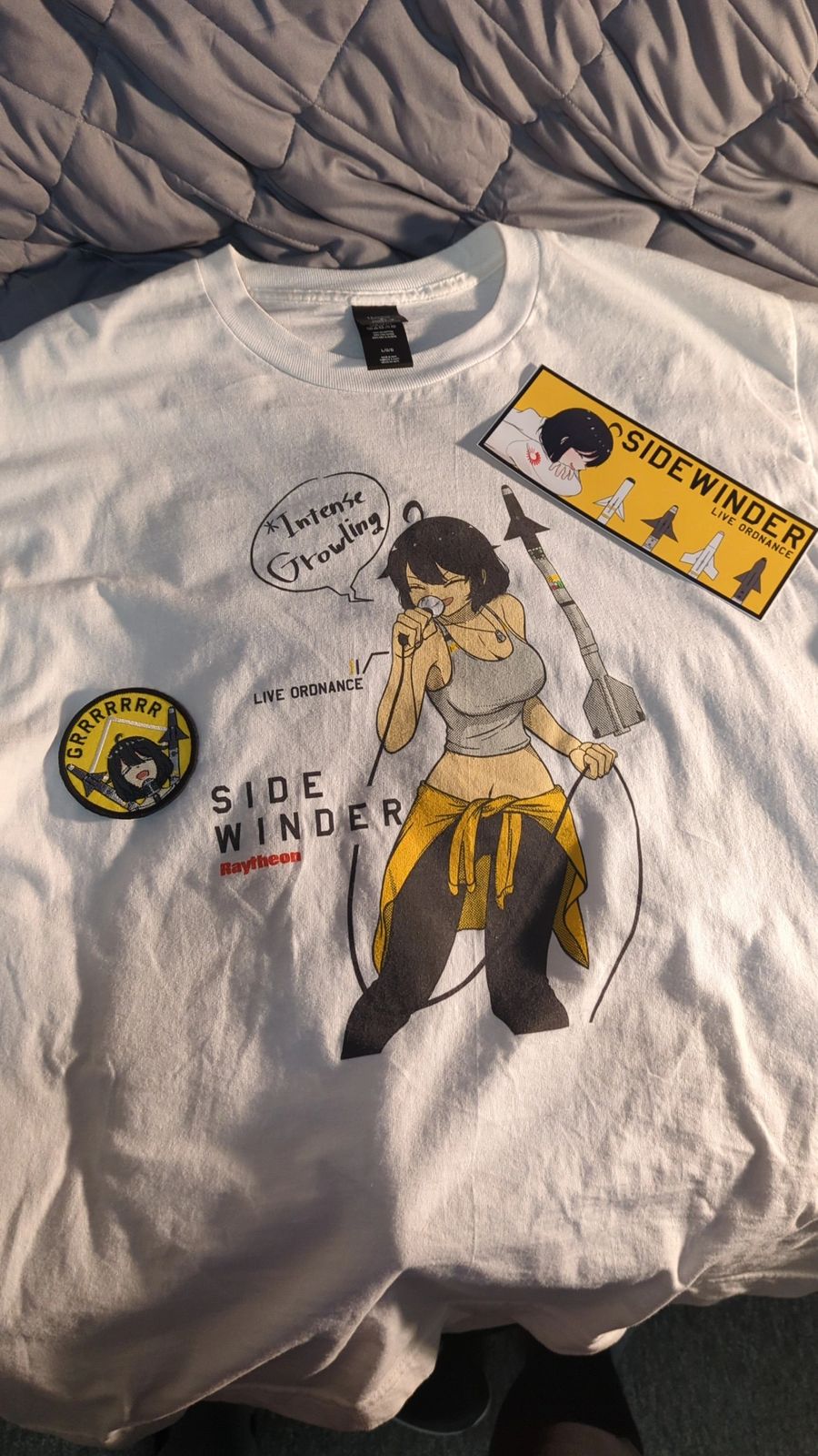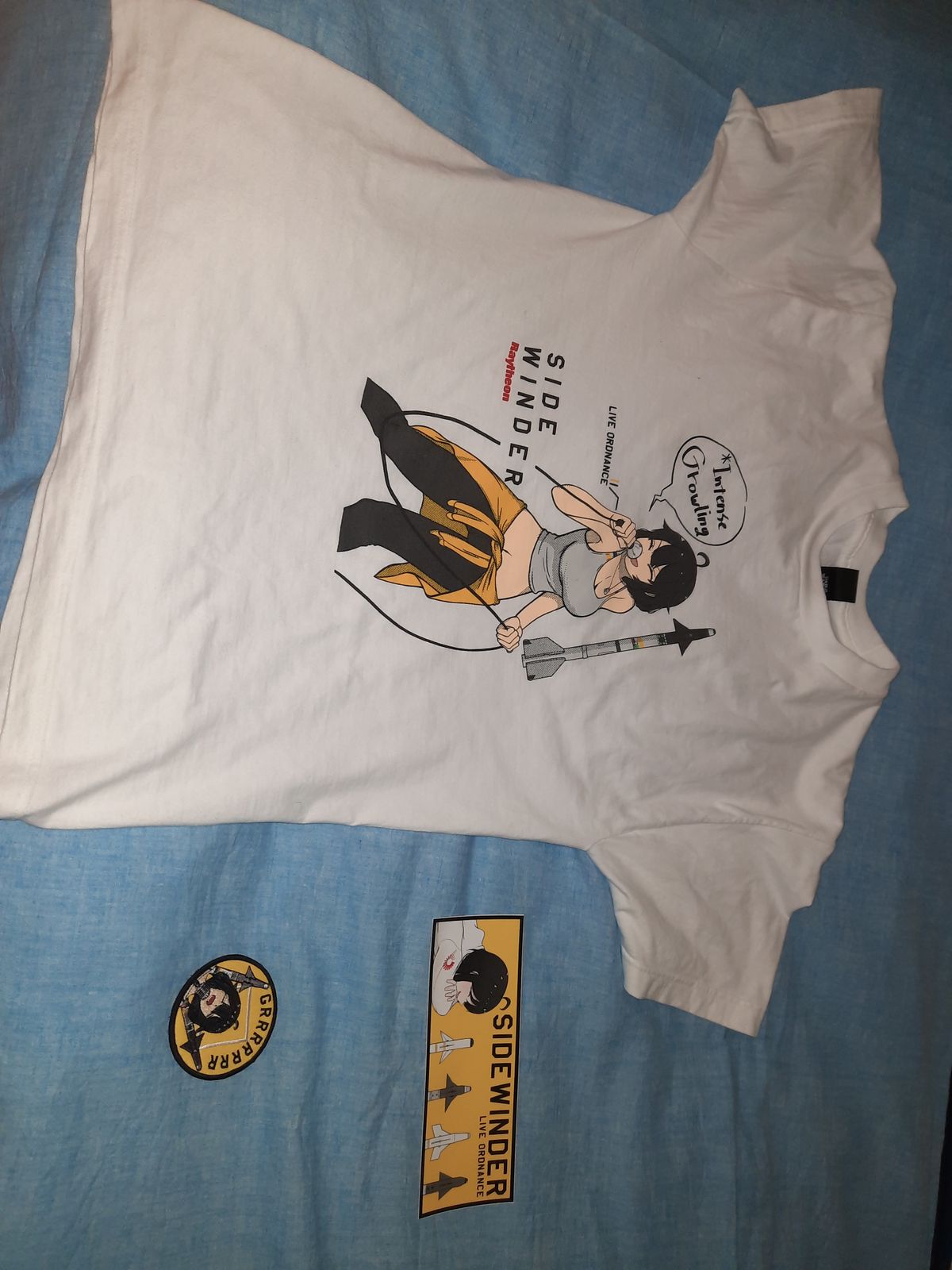 Sick weeb bundle. Sidewinder-Chan patch is current rotation on my work vest. People ask what it’s about, and I just growl at them. Shirt is thicc, great quality, but the size runs about a size large. I wear LG shirts most of the time, but I swim in this one.