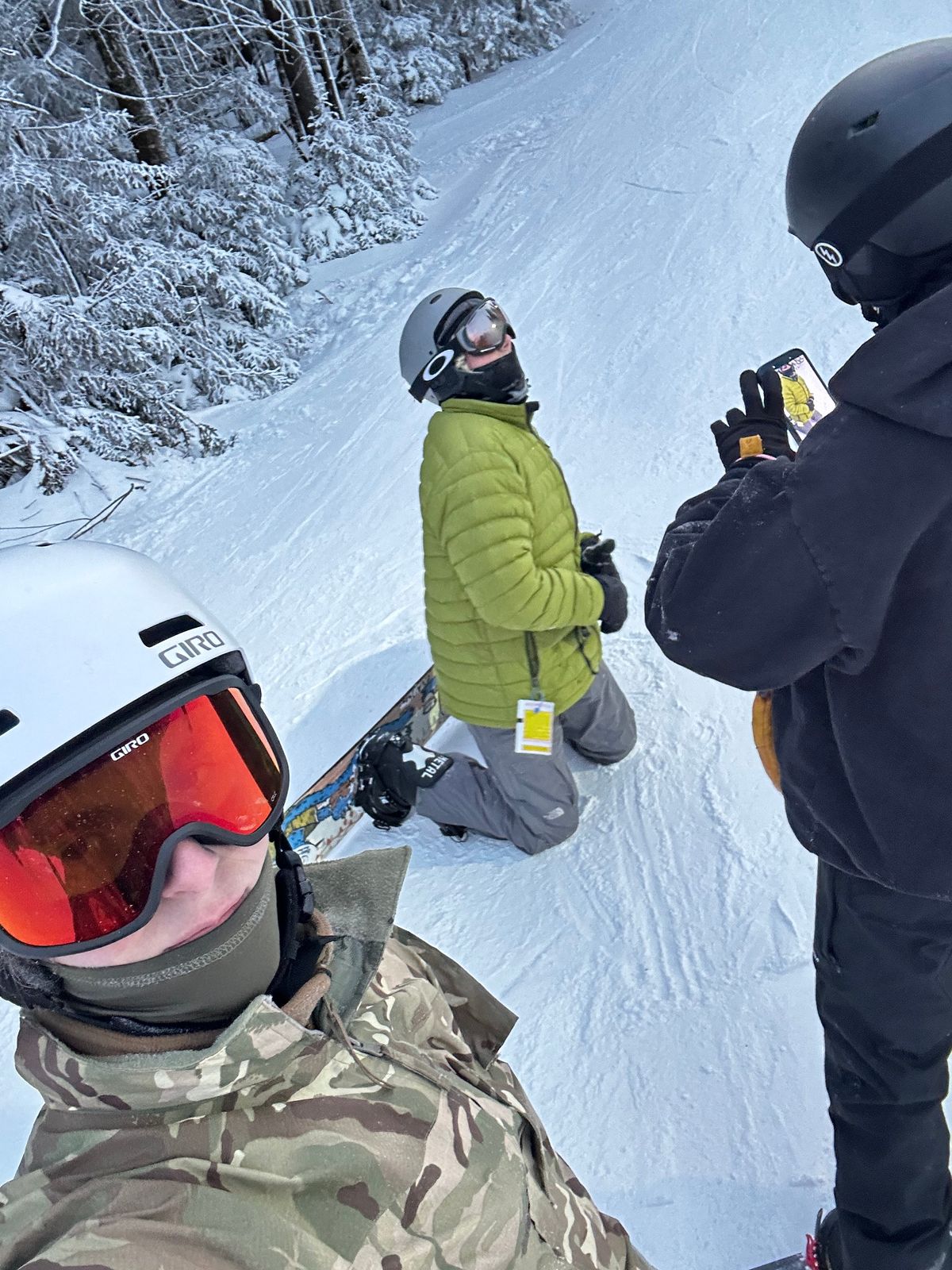 The Gore-Tex pants have zippers going down the entire side seam to expand and contract if you're layering a lot of gear or need to don the pants without taking your boots off. Additionally, the zipper allows for pass-through near the top to get at underlayer pockets. They also feature integrated adjustable suspenders, a drawstring waist, an interior zippered mesh pocket, zippered fly, and everything has a storm flap to keep every molecule of air and water possible out of your pants.