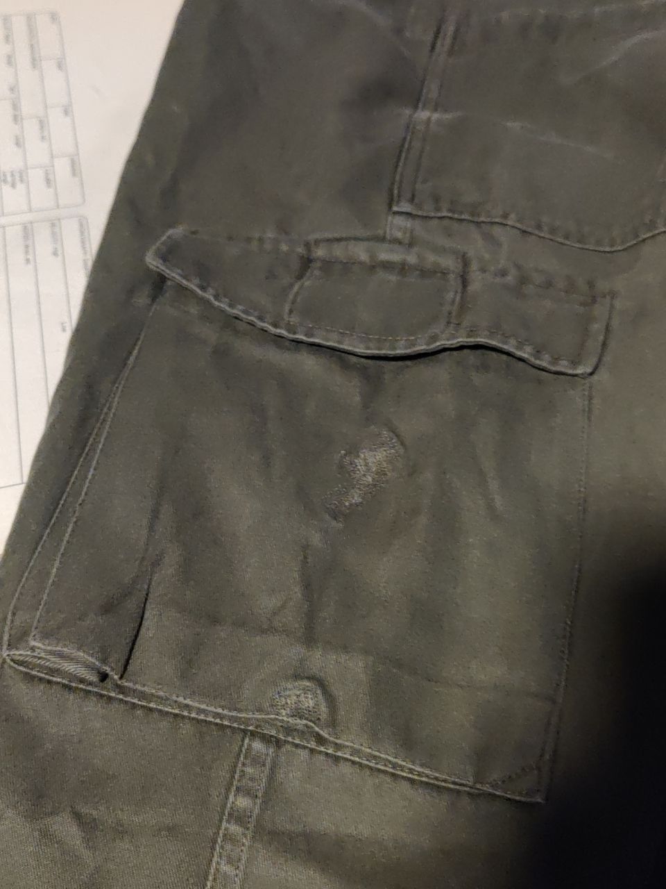 - The outside top corner of the pocket undergoes the most stress. So, it is reinforced with an internal square stress patch, sewn into the corner from the inside of the pants