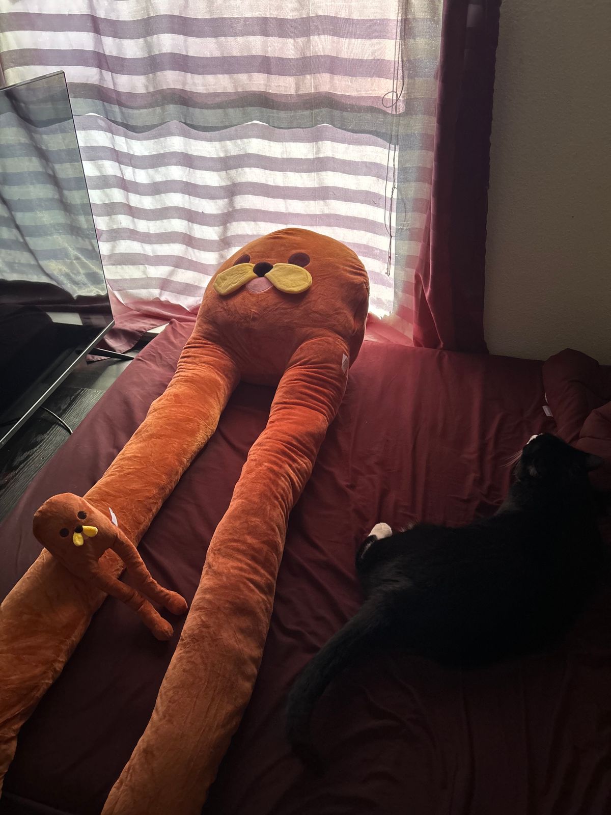 At 6 feet, he can be your life-size, noodle-legged pal on the couch to watch a movie with or piggy-backing buddy on your shoulders, legs dangling with your every step.