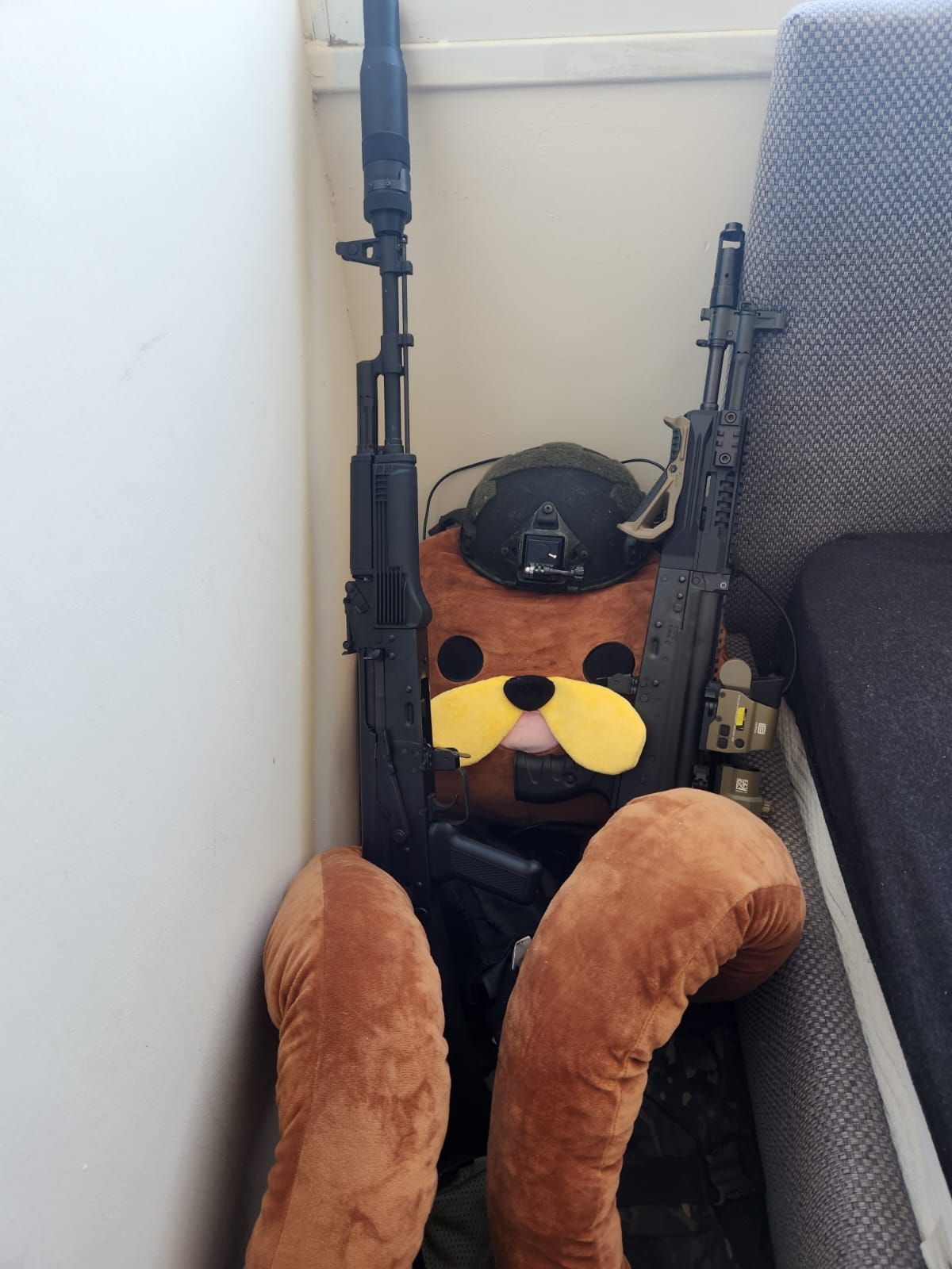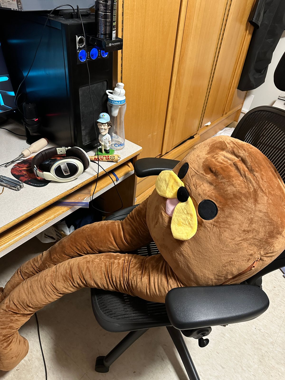 When my gondola first arrived, he seemed a little shy, sticking to the corner of my room holding my AKs for comfort. After a few nights of cuddling him in bed, he got pretty comfortable, and that's where he hangs out most days. Came back home today to see him trying to wear my favorite pair of socks, even though they didn't really fit his feet. Great addition to the house, can't wait to introduce him to my parents