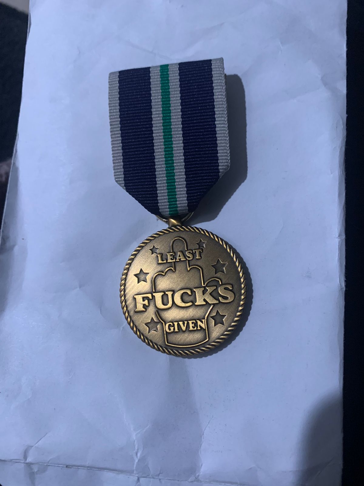 FOR: exceptional dedication and devotion to giving the Least F**ks during your time with the U.S Armed Forces.
