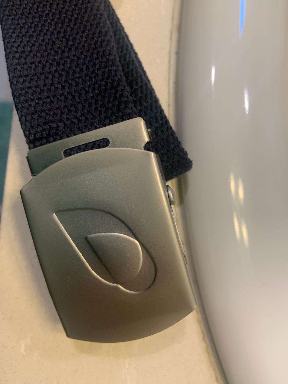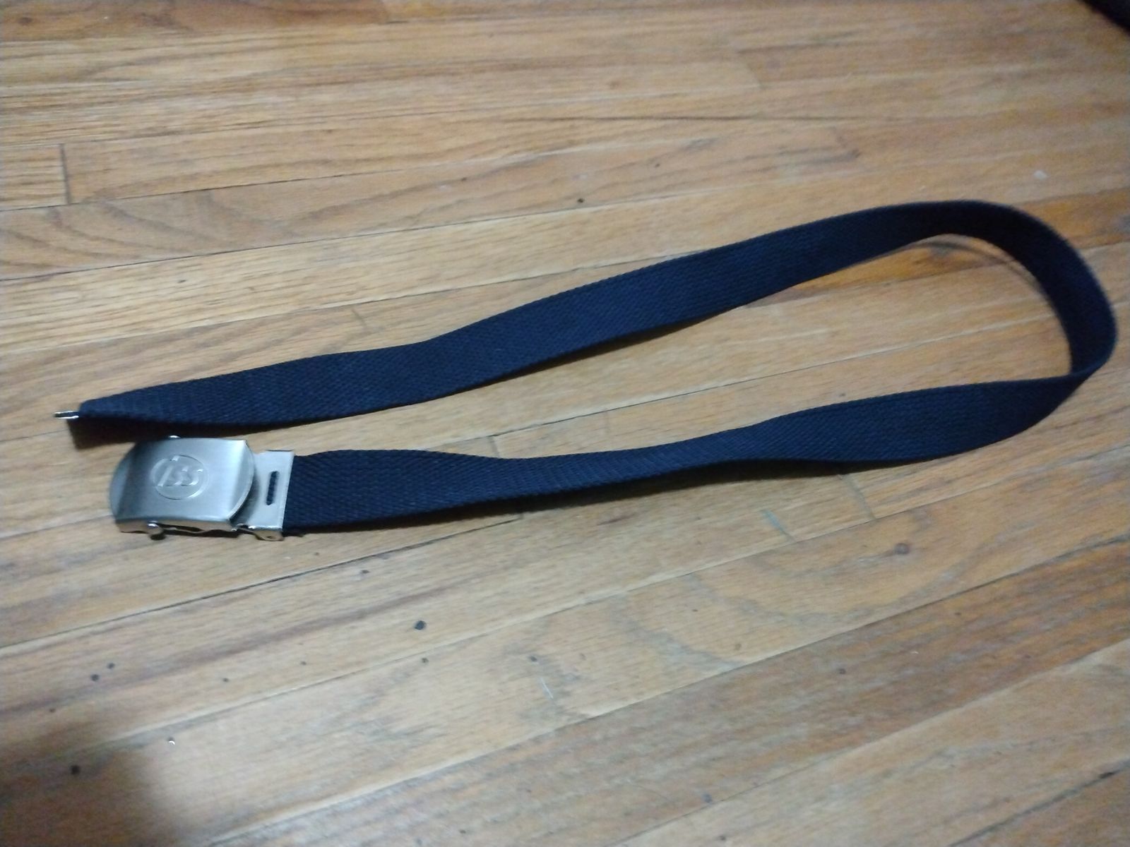 A simple webbing belt meant for a simple task. Keeping your pants for when you need them and being quick to doff when the cute USPS driver decides if it fits it ships. Simplistically eloquent and goes well with just about anything, with stylish buckle to boot.