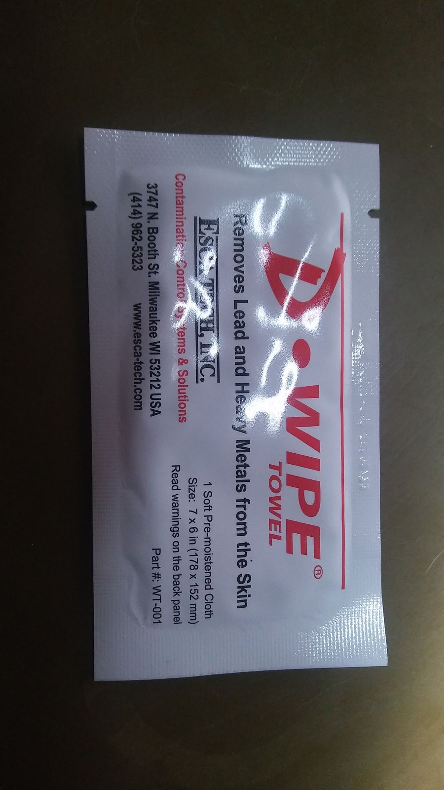Regular wipes are great for cleaning off dirt and grease, but they don’t quite cut it when it comes to lead and heavy metals. Heavy metals have a sticky, static charge that holds them to surfaces like skin. Regular wipes don’t break this bond, instead, just smearing the metals around rather than picking them up. D-Wipes use a special solution to break the static bond and lift the particles up off the surface, trapping them in the specially designed fabric of the wipe. In tests, D-Lead wipes and soaps have been shown to remove about 99% of lead from a surface, while regular wipes only remove around 70%.
