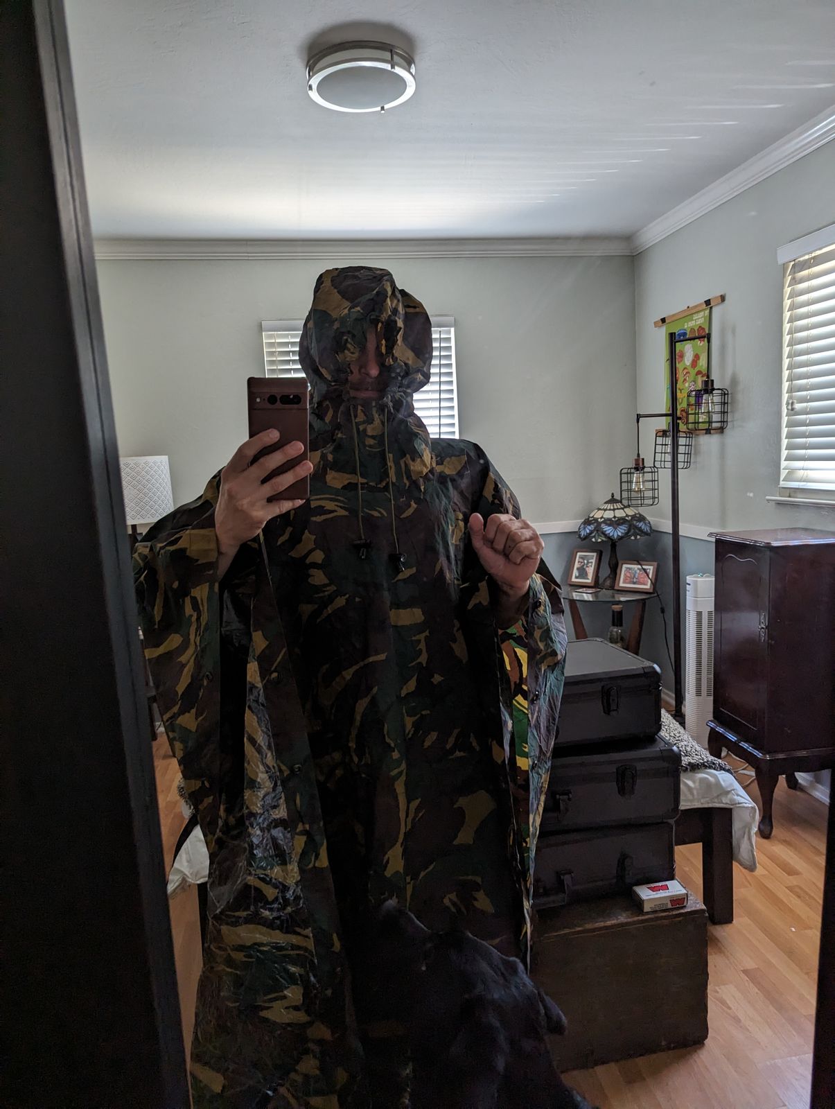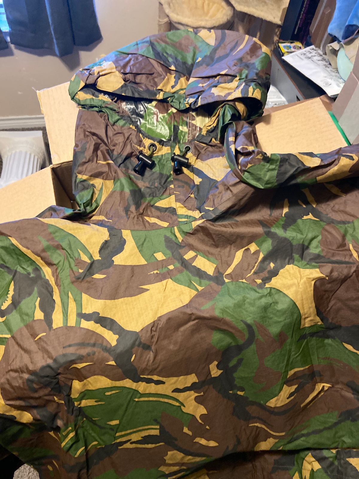 Whether you're out innawoods for a hike, behind enemy lines in the PNW, or just need to stay hidden and dry when your new stepdad comes over, the Dutch DPM poncho is a perfect fit.