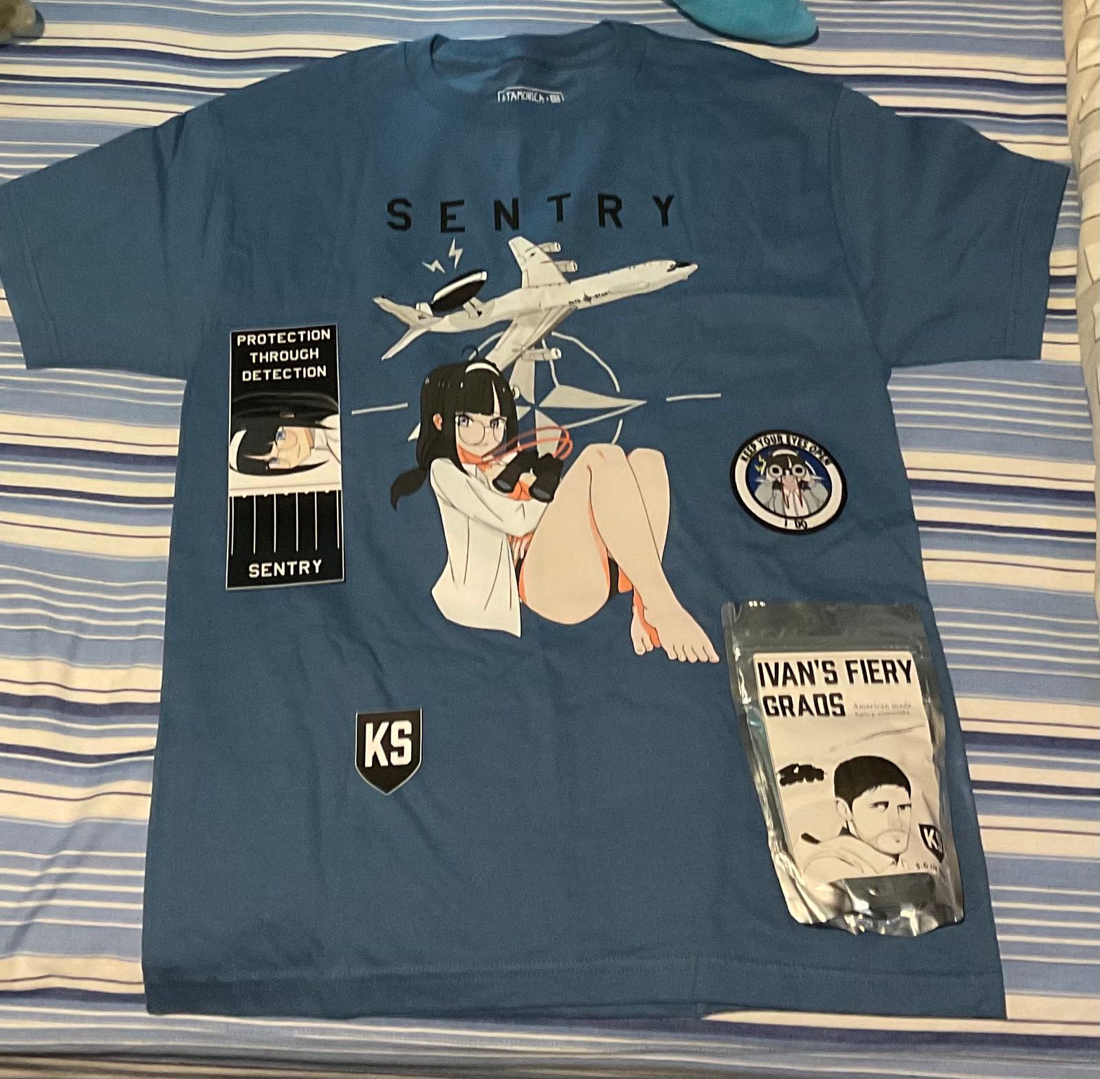 Our bundle also includes an 8 x 3" slap of Sentry-Chan, and a woven 3" patch—both original, never-before-seen designs.