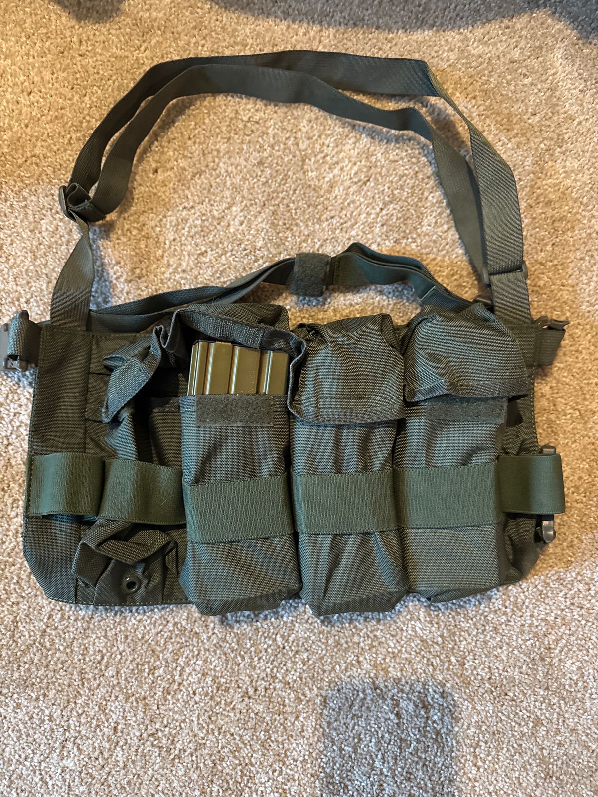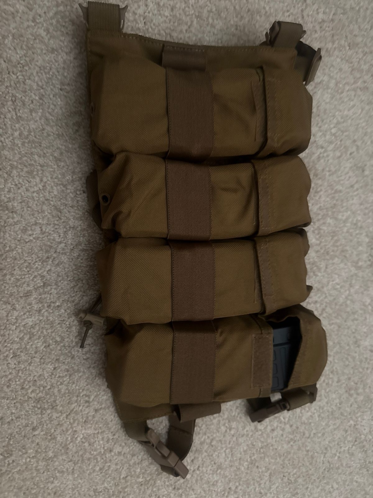 It has 4 mag cells that can carry 2 STANAGs each, for 8 total magazines or 240 extra rounds. Need to stow it away? fold it up into a brick and secure it with the included shock cord. Now you can throw it in your bug out bag, range bag, or throw it in your center console.