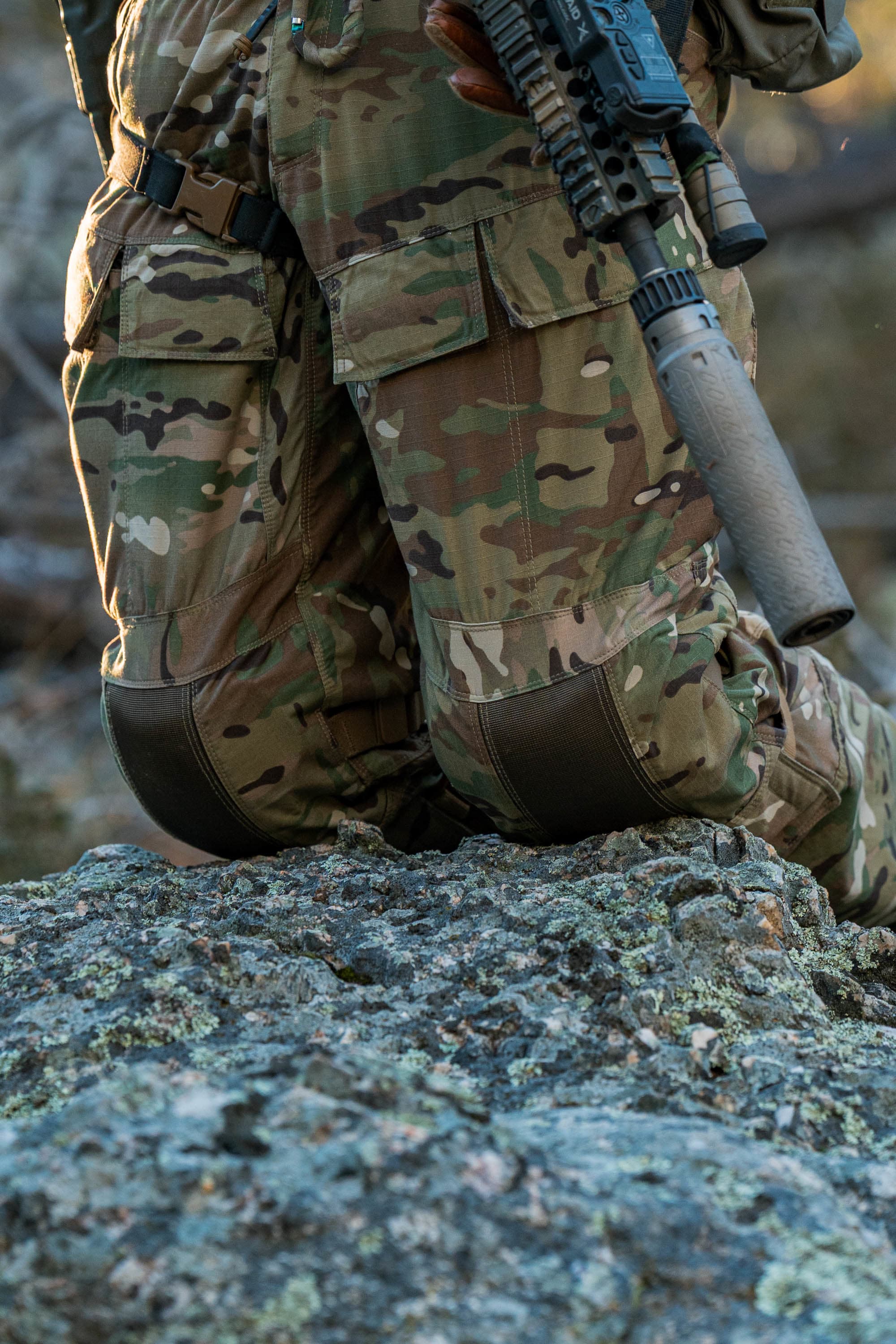 This uniform has an extended area where slings, packs, rigs, and more can slide across ripstop rather than get caught up and damage the jersey material prematurely