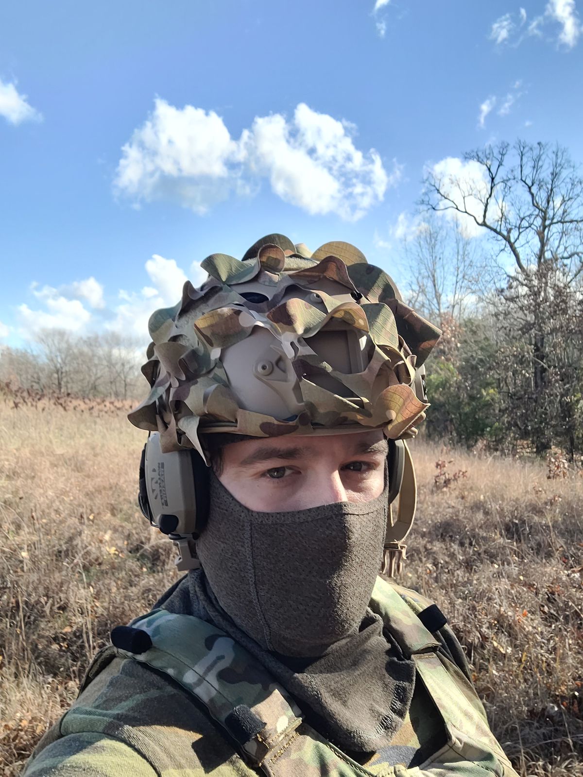 But one of our main complaints about the original, which you can even see on the famous pics of Mr. Craighead are the sometimes floppy fit. We dialed in the shape of the neck drape for easy owl-headed movements and the facepiece is much better at actually hanging out on your face. It's still super comfortable and snag free under helmets and ear protection too!