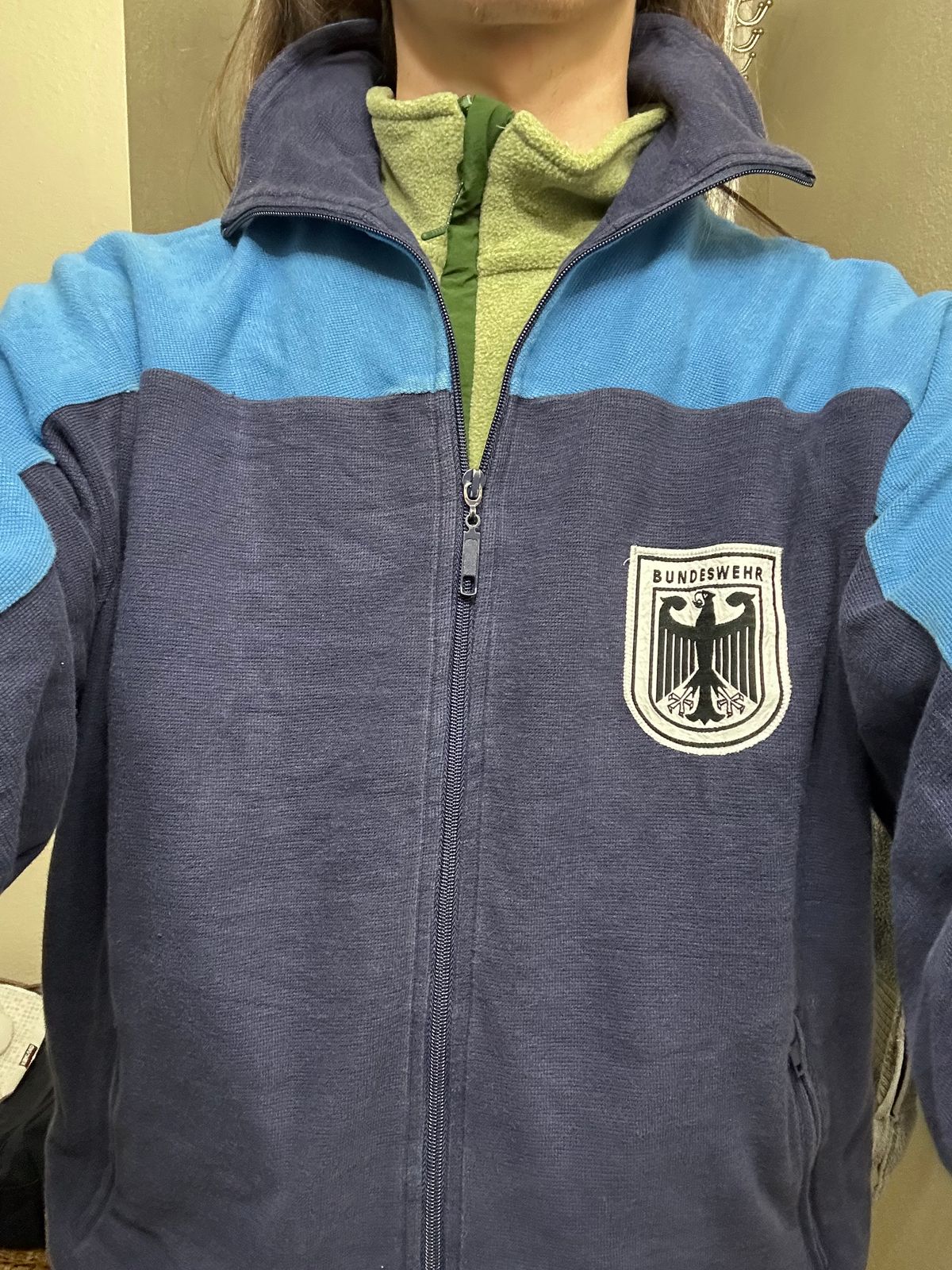 The jacket features a fully-zippered front, zippered pockets, and elastic cuffs around the wrists and waist. The Bund Alder eagle is displayed proudly on the front, with sewn on extras being a little rarer in the batch we received. The 60/40 poly/cotton mix is a happy medium in between our Tropen Tees and classic OD Tees from the Bundeswehr — this makes them great for warmups and cooldowns.