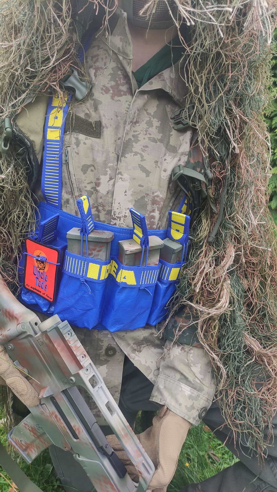Then, we moved on to improvements. The silhouette of our rig is inspired by the more contemporary "Chicom" style webbings on the market with its octagonal base panel and 4 mag cell configurations. The OG was much larger, more awkward, and with no magazine retention.