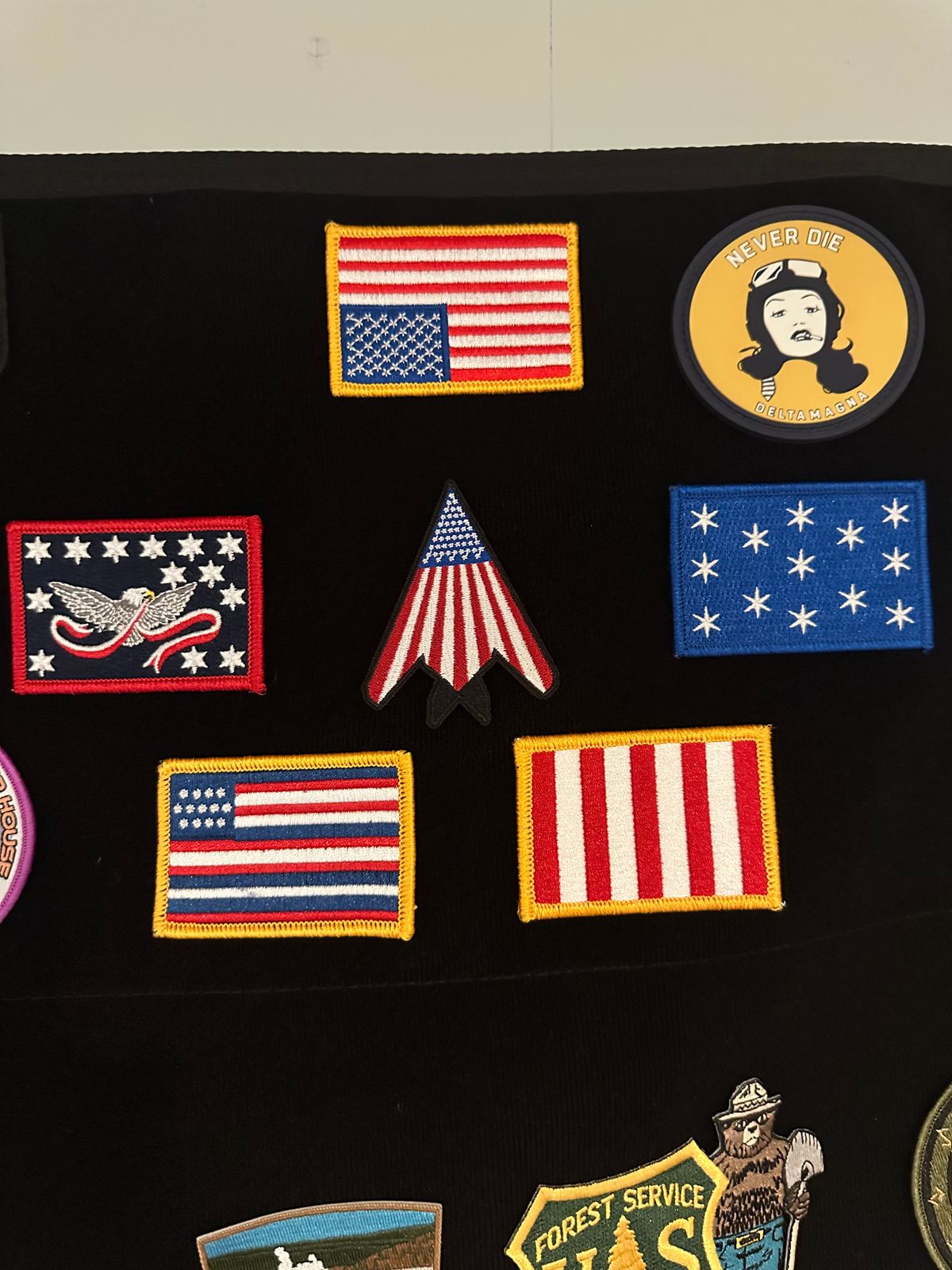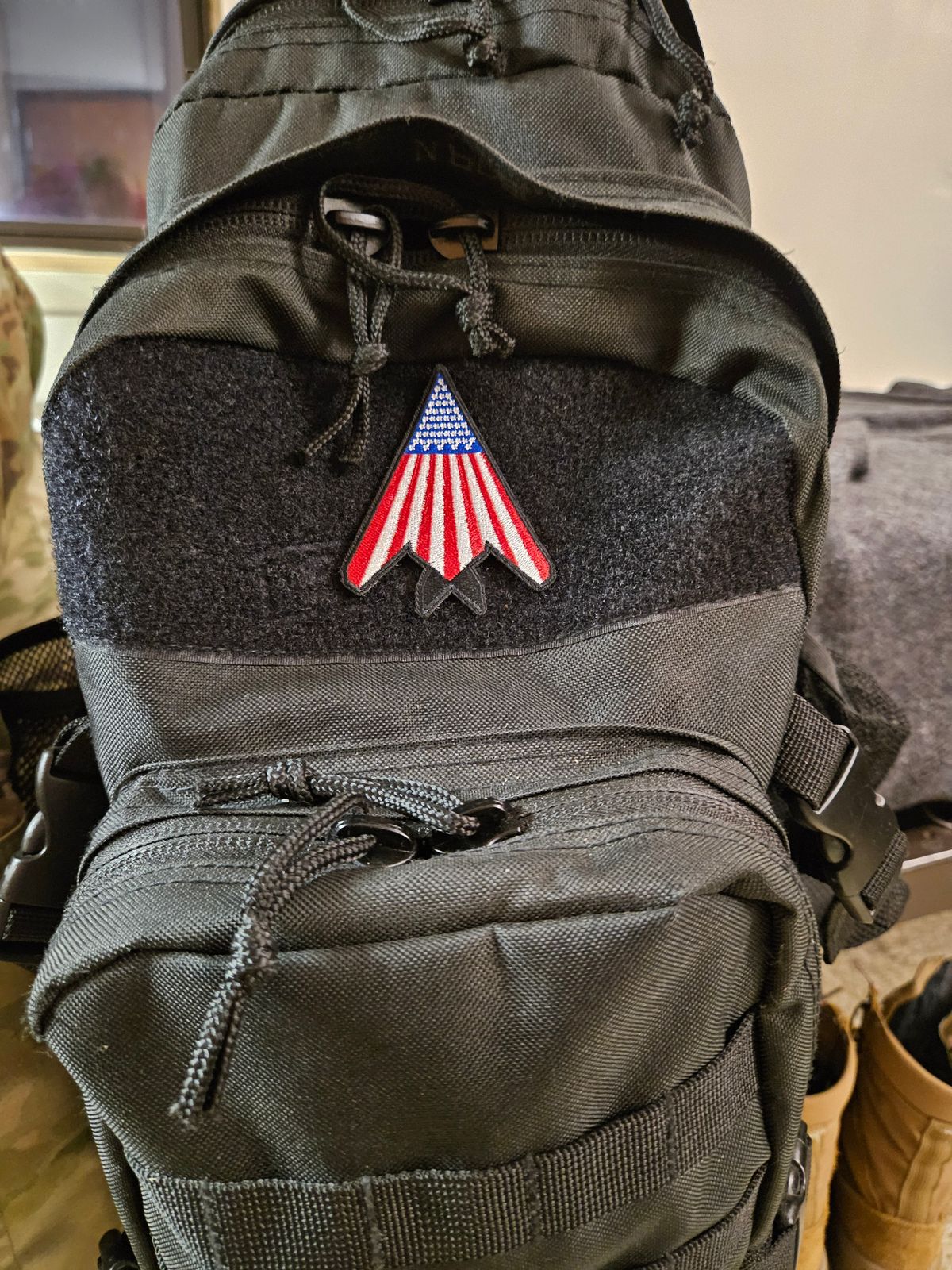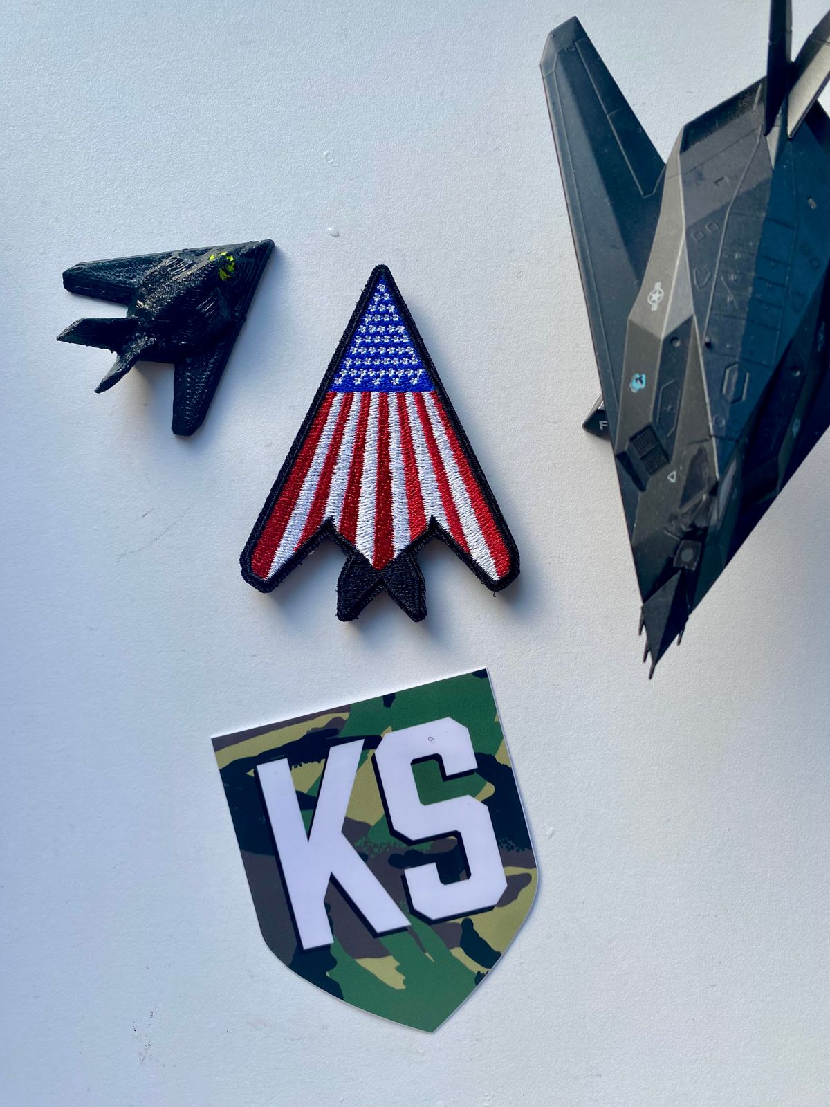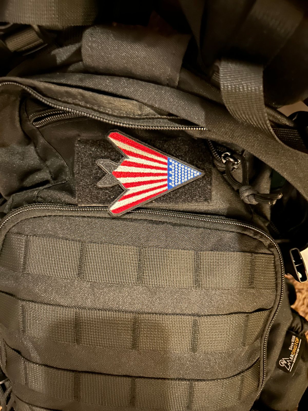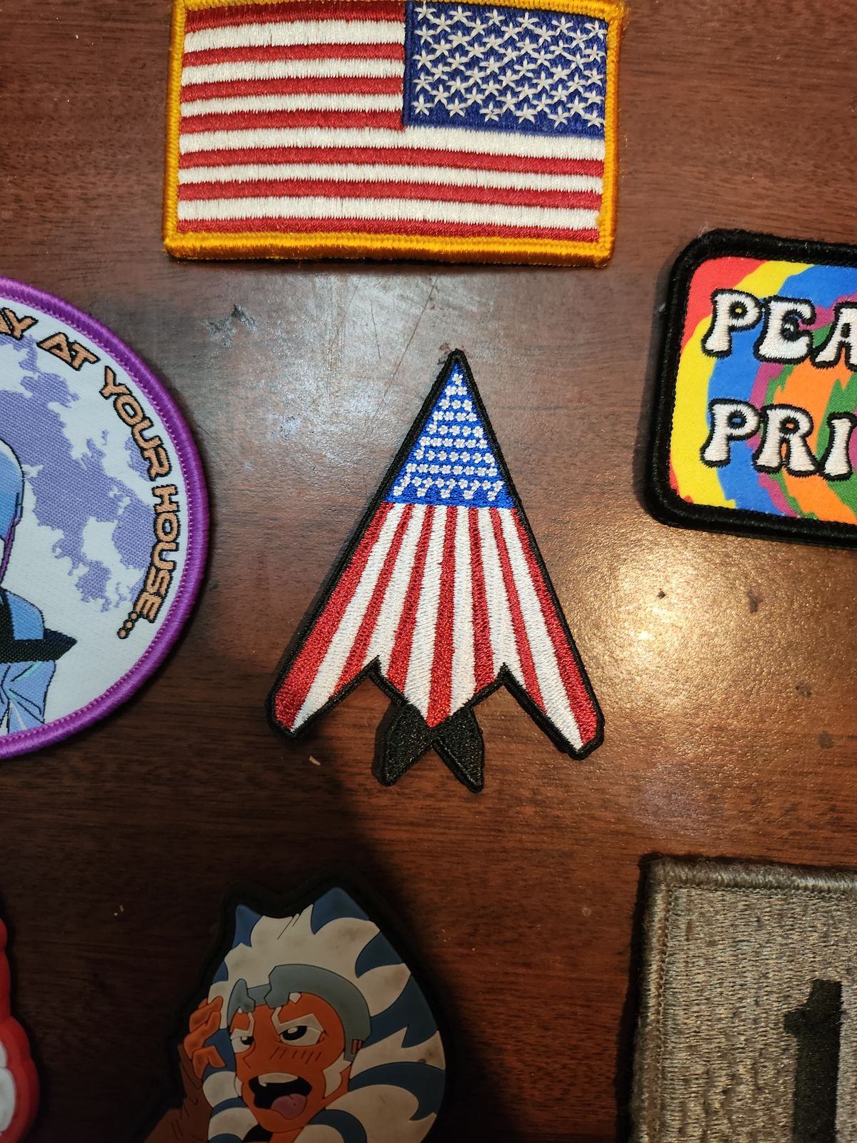 This patch is in reference to one of the F-117's most famous paintjobs, a star spangled banner on it's belly during a "retirement" ceremony in 2008 (pictured below)