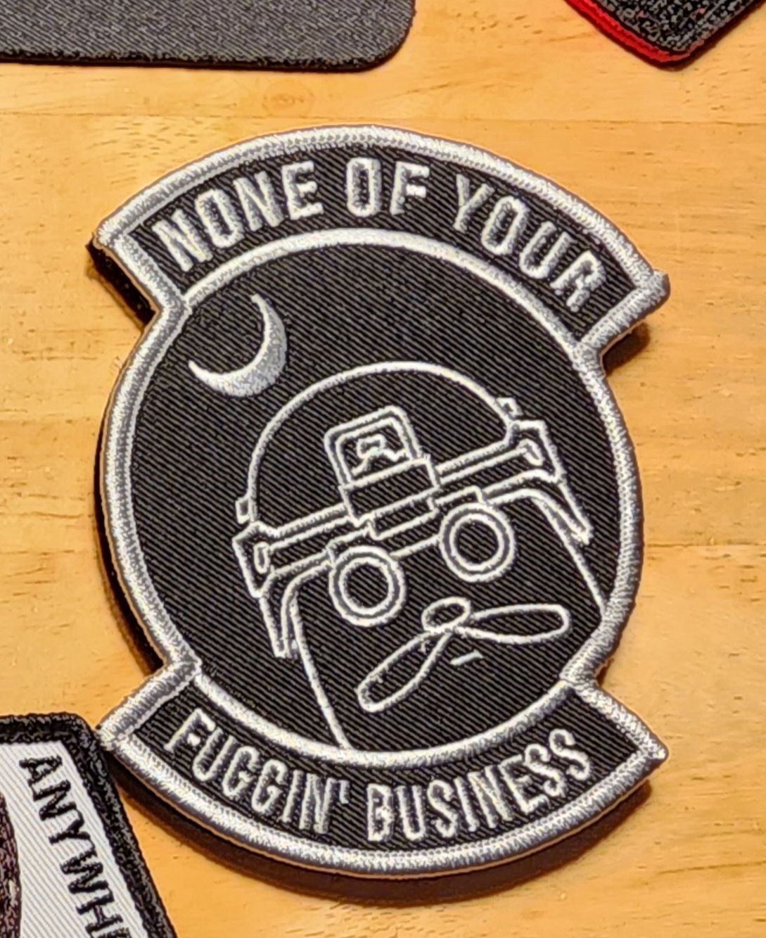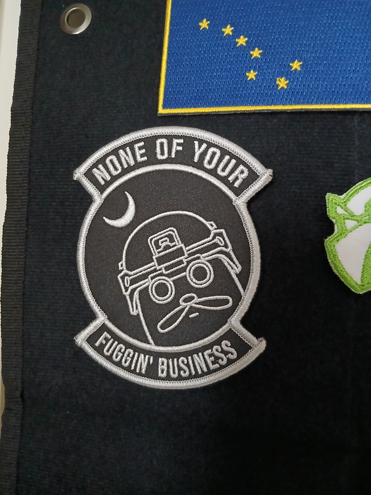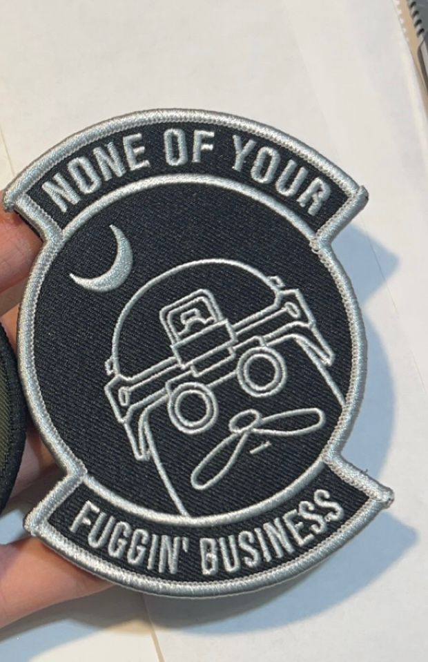 Inspired by the patch made for the airlift squadron who quietly carried disassembled F-117 Nighthawks to area 51 in the dead of night.