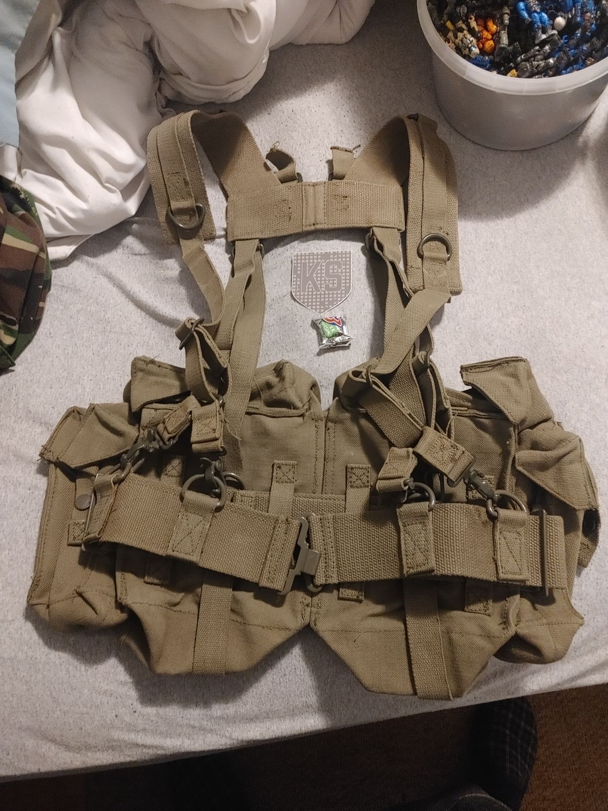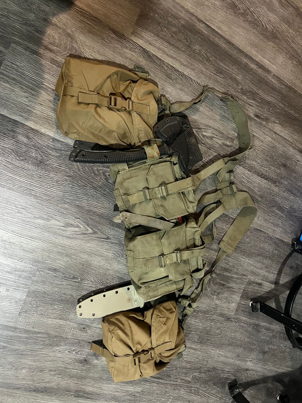 - Four double magazine pouches designed for 20rd FAL mags, hold a total of eight mags