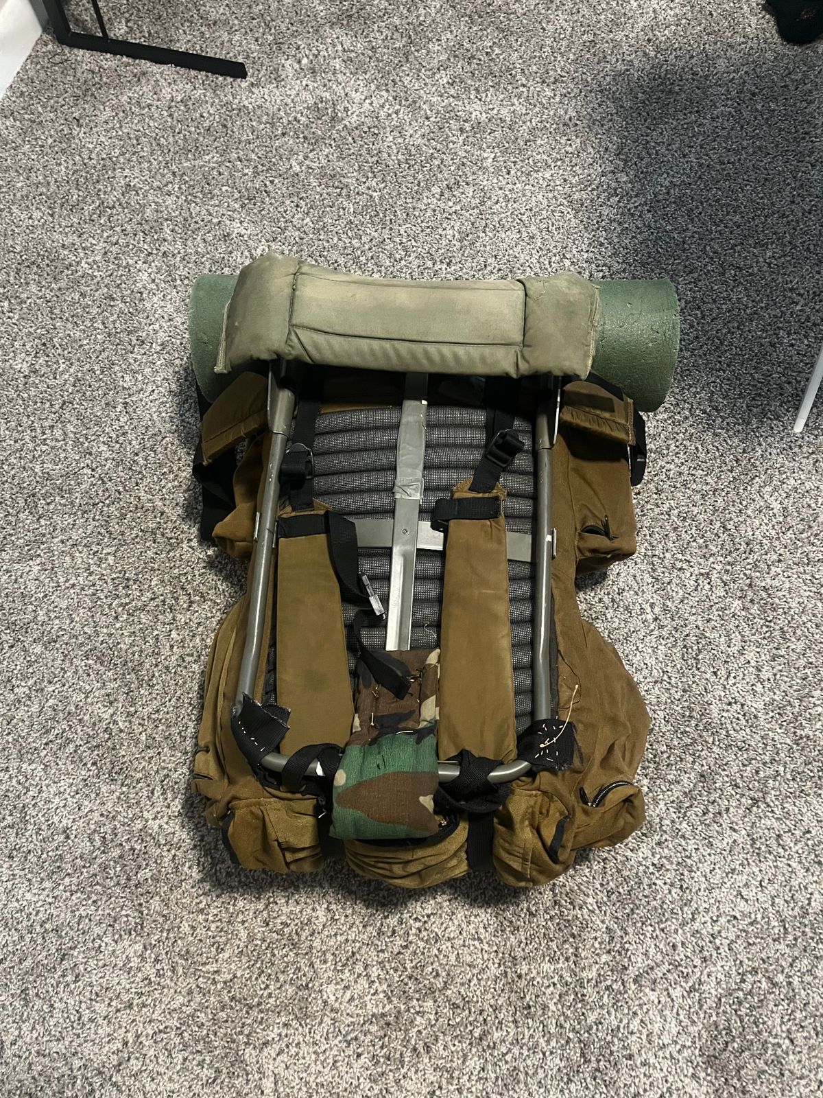 While all grootsaks were originally issued with a metal frame designed to aid paratroopers, many soldiers removed it to lighten the pack and improve comfort. This field modification became so popular that most packs were stripped in the field, and eventually bags were issued without the frame to all but airborne soldiers.