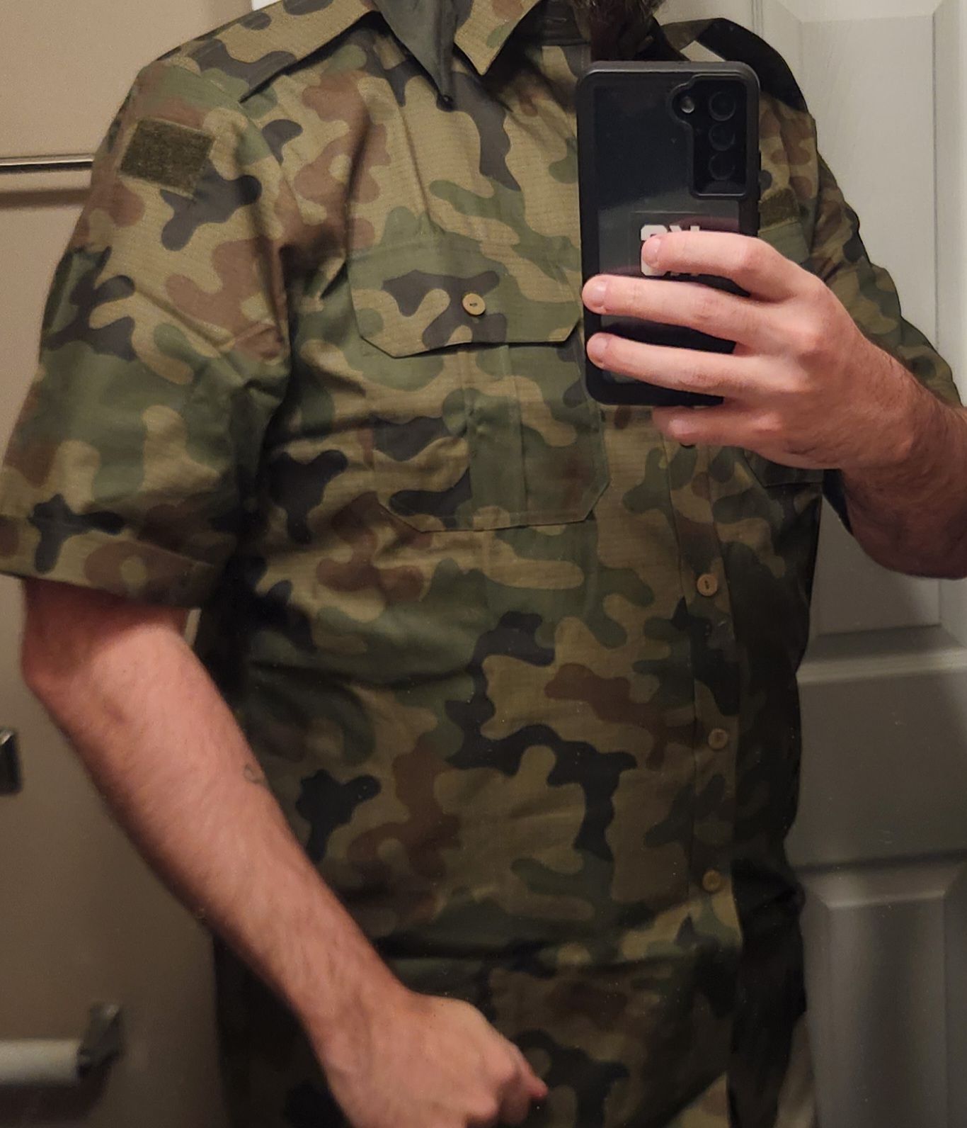 What can I say? My favorite woodland camo in a casual Friday shirt. Sold.