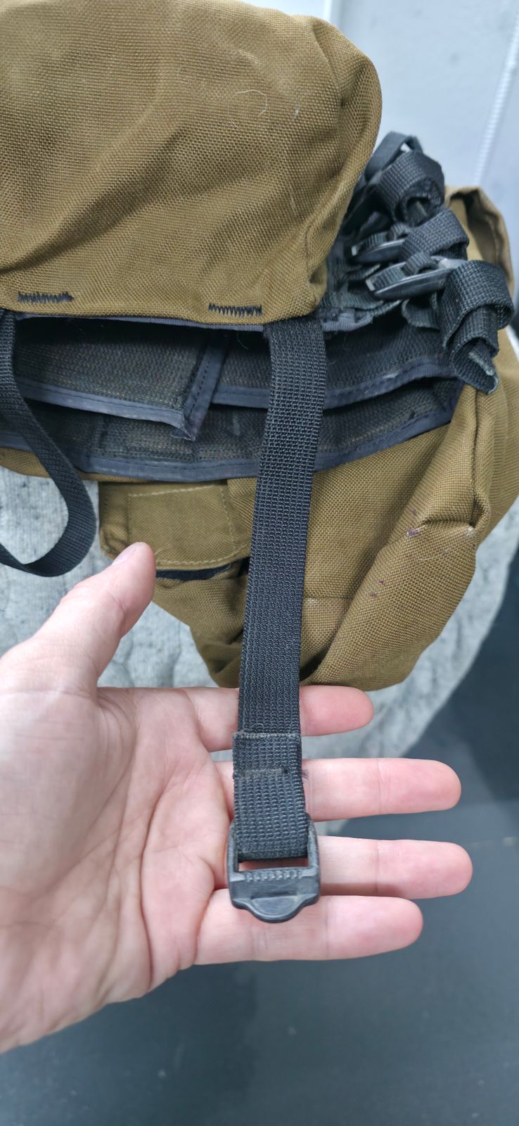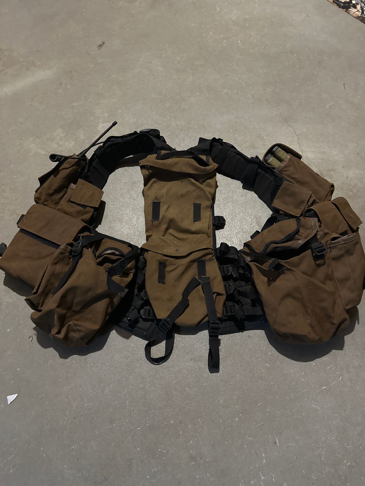 The item may have minor or major field repairs, or field modifications. This includes (but is not limited) to: removing the divider between the two pouches on the back of the rig, small additions such as hardware, or removal of mortar straps.