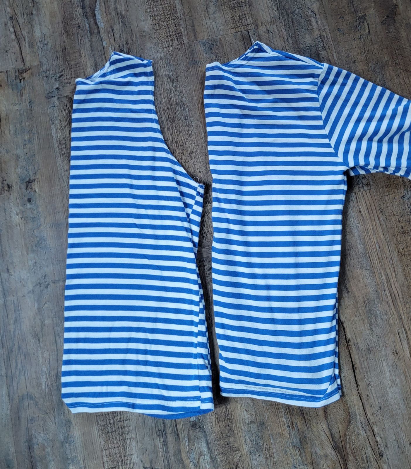 The wide neckline makes the telnyashka quick to don and doff, and legend has it that it’s designed to show off the swole, oily traps of stronk (definitely not malnourished) Soviet sailors.