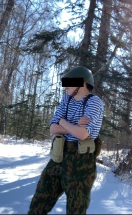 The blue telnyashka is a badge of honor among VDV paratroopers, and we have to admit the contrast between the blue and white undershirt and the camo blouse is striking. Soviet uniform designers even created a different cut of the Airborne's military coat designed just to show off the telnyashka.