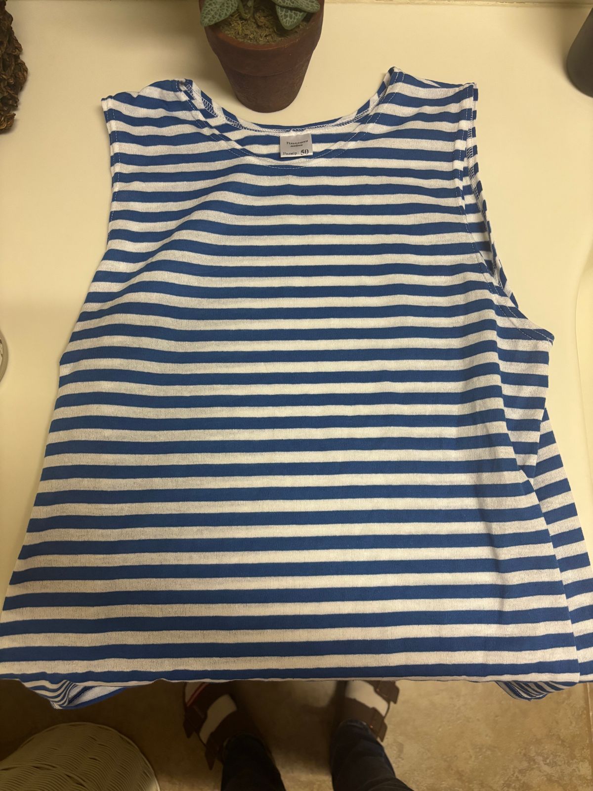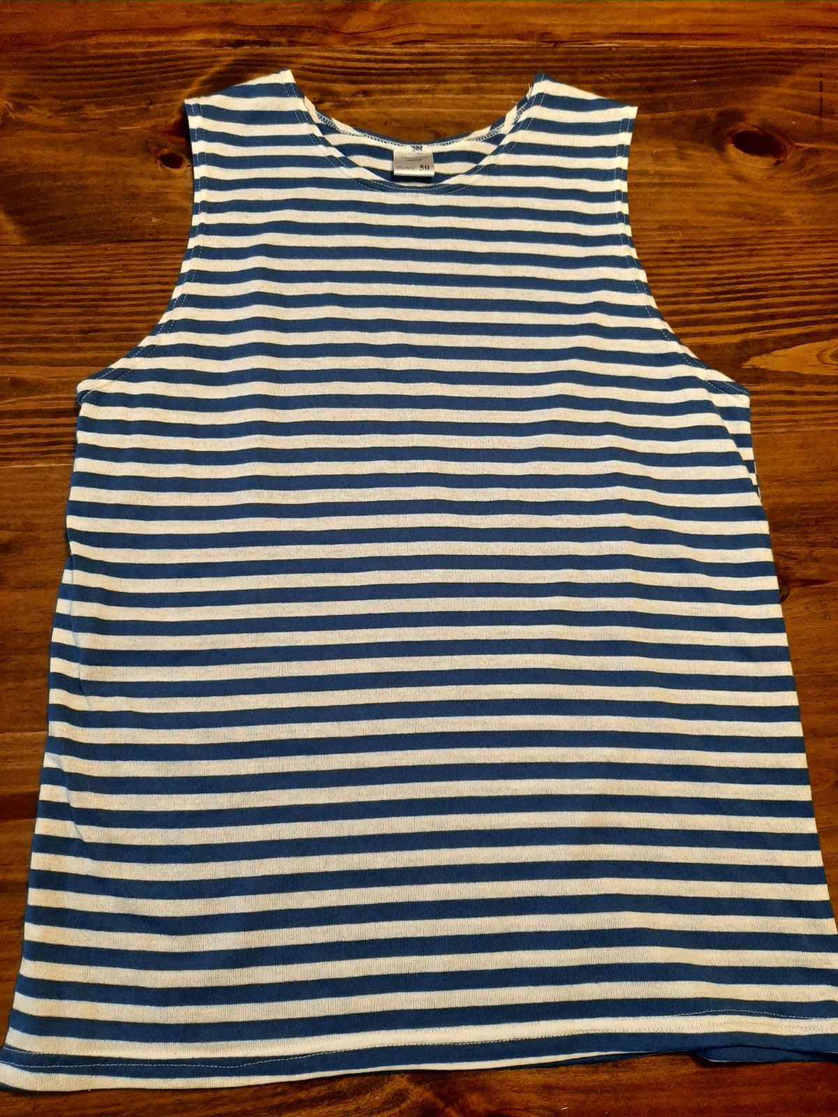 The wide neckline makes the telnyashka quick to don and doff, and legend has it that it’s designed to show off the swole, oily traps of stronk (definitely not malnourished) Soviet sailors.