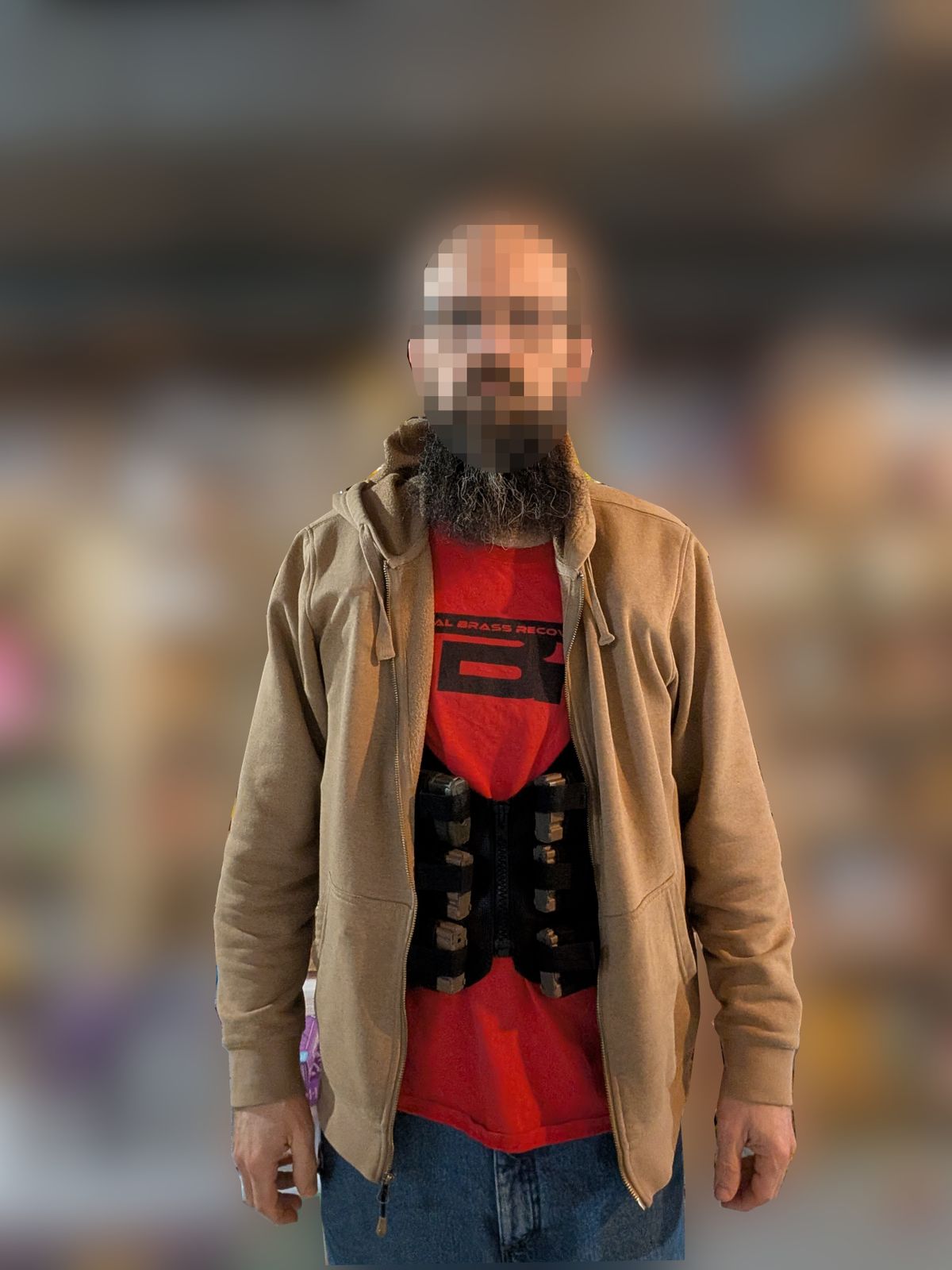 This includes the single most iconic prop of the film, the 'Heat' rig; an improvised vest capable of hiding 8 STANAG magazines underneath a suit jacket. Being inconspicuous was important to the characters in HEAT — to pull off their plan, they needed to waltz into a busy, guarded bank with hundreds of rounds of ammunition and rifles without anyone batting an eye.