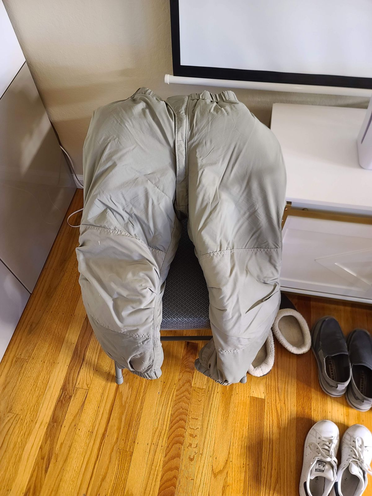 This specific piece is the Level 7 Pants, the crown jewel of the layers you'll put on when you're really, really cold. Featuring PrimaLoft Sport thermal insulation (later replaced with another product called Climashield Apex), it blankets you in extra-cozy insulation that can't be beat. Meant to be used during static operations in the extreme cold, it keeps as much body heat in as possible to keep you warm. The outer shell is water-repellent, and the insulation even works soaking wet, meaning a dramatically decreased risk of hypothermia and little to no "soak in" like other garments.
