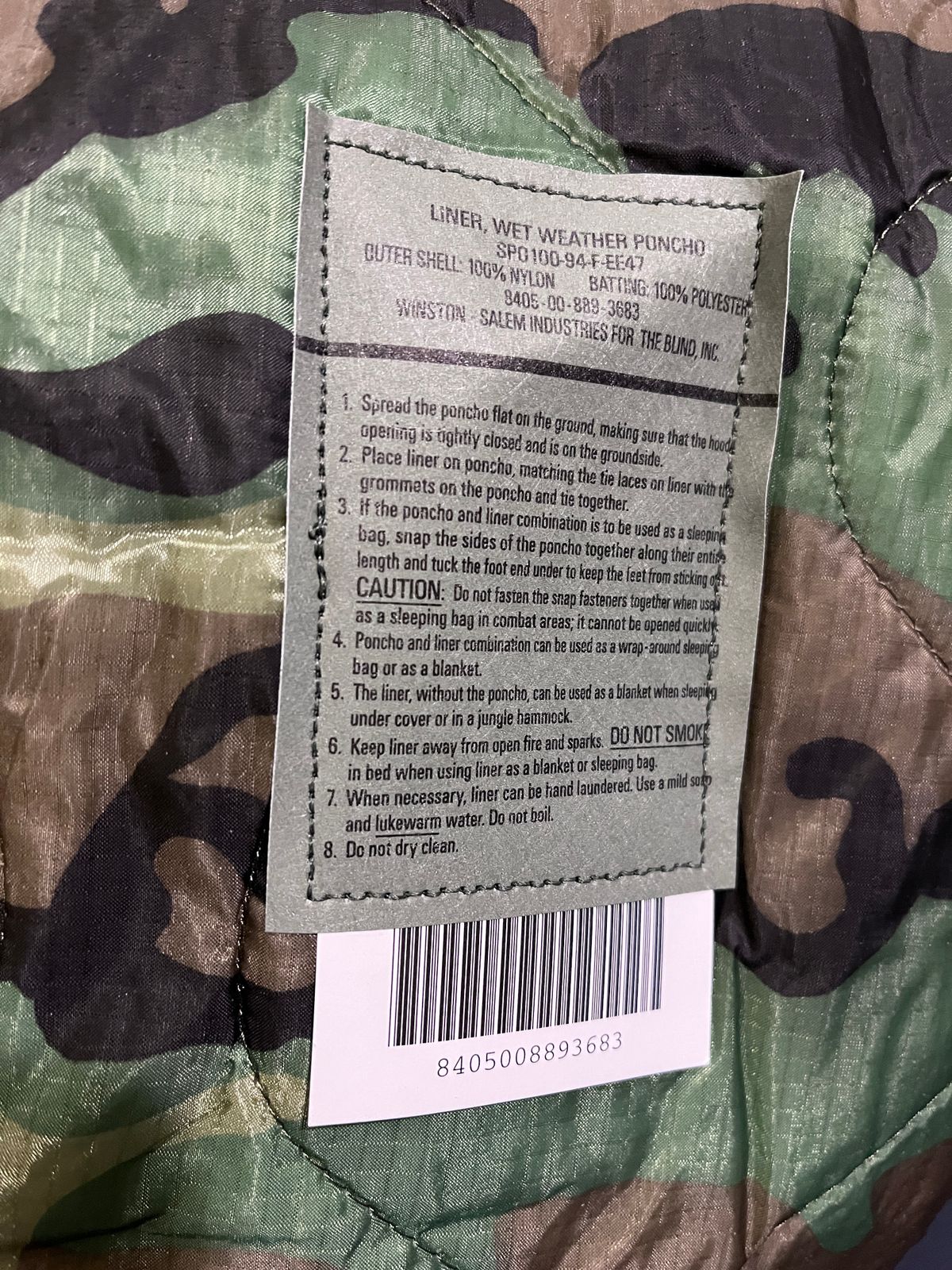 Poncho Liners are in factory new, unissued condition.